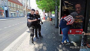 Dne 4.6.2023 v 7:45 hod. byla vyslána hlídka strážníků ze skupiny operačního zákroku do ulice Hrnčířská k zastávce MHD, odkud telefonoval oznamovatel, který operátorovi sdělil, že zde dochází k slovní rozepři mezi ženou a mužem, kdy žena má mít v ruce otevřený nůž. Po příjezdu hlídky na místo strážníci celou situaci uklidnili a zjistili, že žena má v ruce otevřený nůž a hystericky křičela na přítomného muže a byla zde důvodná obava, že může být nože užito k násilí proti dotyčnému. Z tohoto důvodu byla jedním ze strážníků vyzvána, aby zbraň odevzdala z důvodu, že zbraně může být užito k násilí nebo pohrůžce násilím, a to vzhledem k psychickému stavu ženy. Ta následně hlídce nůž dobrovolně vydala. Vzhledem k tomu, že ani jedna ze stran nechtěla situaci dále řešit, byly obě osoby po řádném poučení z místa strážníky vykázány.