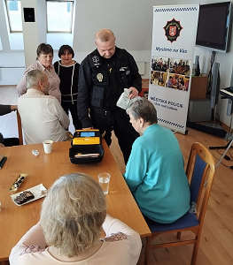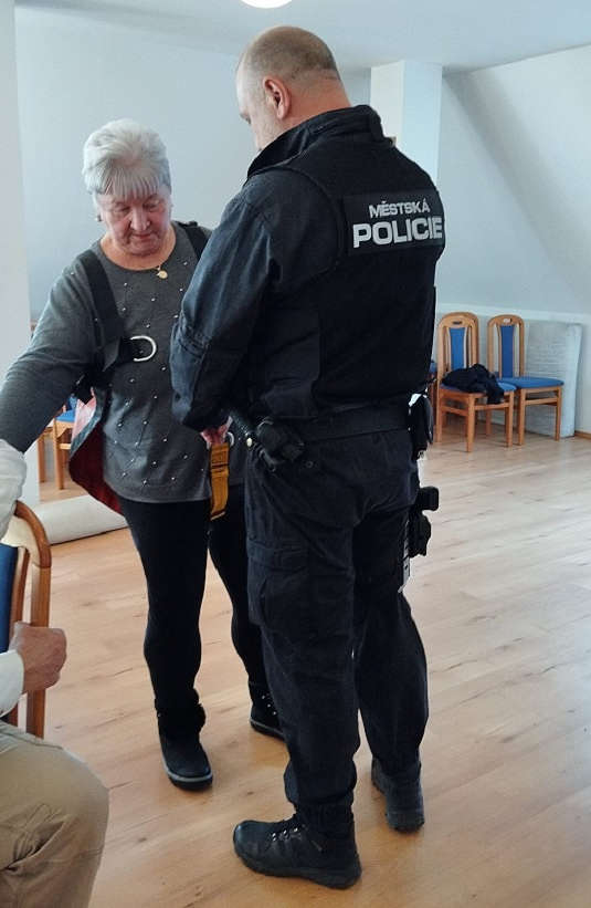 Dne 21. 2. 2024 se uskutečnilo v regionálním centru obecně prospěšné společnosti „Živá paměť“ další setkání, v rámci projektu prevence kriminality Městské policie Ústí nad Labem, který je zaměřen na seniory a handicapované spoluobčany „Myslíme na Vás“. Náplní této organizace je mimo jiné i nabídka služeb a aktivit pomáhající přeživším obětem nacismu, které mají vzhledem k velmi vysokému věku a zdravotnímu stavu omezené možnosti kontaktu se společenským prostředím. Celá beseda se nesla v duchu diskuse na téma osobní ochrany a ochrany majetku. Velký zájem projevili senioři o dopravní situaci v městě a s tím spojené bezpečné chování v silničním provozu. S velkým ohlasem se setkala ukázka činnosti a výstroje strážníků ze skupiny operačního zákroku městské policie. Čas strávený na přednášce byl velmi příjemný a plodný, protože většina seniorů měla spoustu témat do diskuze. Na závěr besedy strážníci předali všem přítomným reflexní prvky, drobné reklamní dárky a brožury, které pro ně věnovalo vedení města.