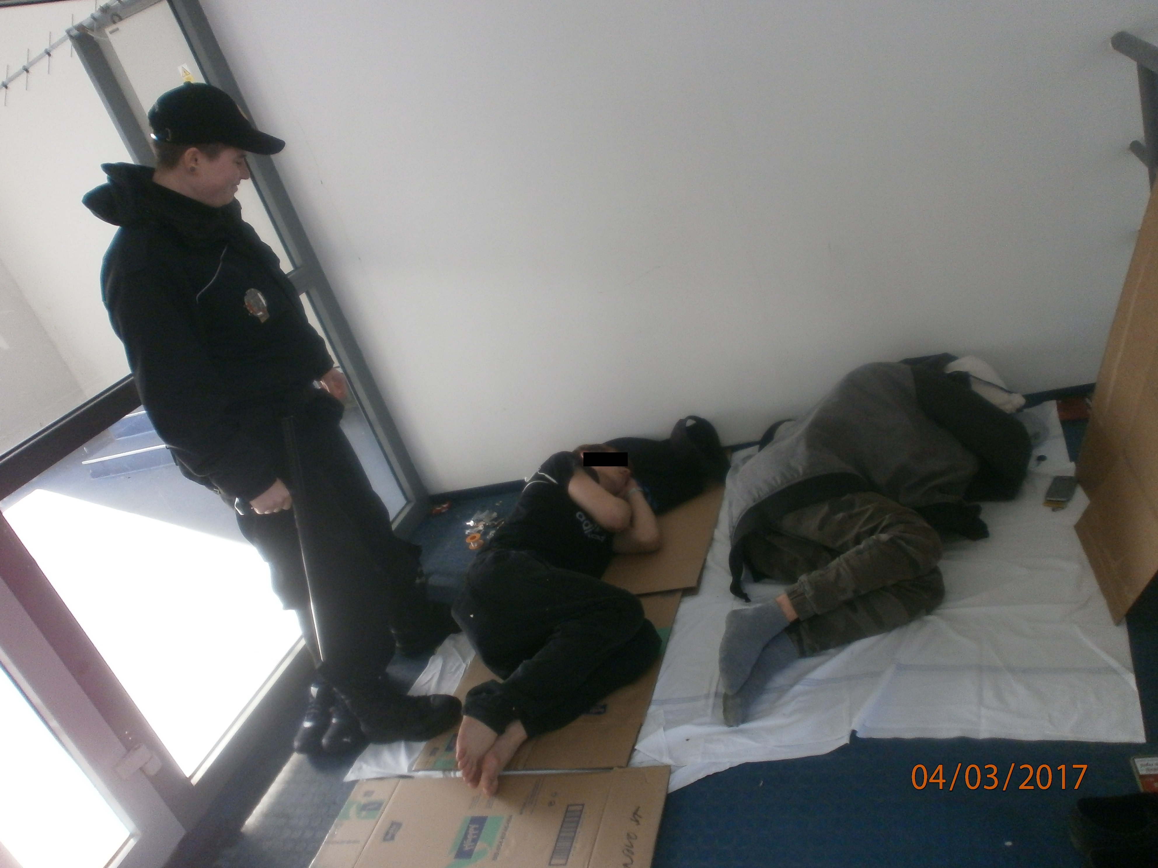 Dne 4.3.2017 v 09,55 hod., prováděla hlídka strážníků kontrolní činnost v areálu Masarykovy nemocnice, kde si v jednom z oddělení všimla přespávat na zemi bezdomovce. Strážníci bezdomovce vzbudili a lustrací zjistili, že se jedná o Františka S.(1995) a Milana T.(1994), oba bytem Ústí nad Labem. Hlídka oběma bezdomovcům vysvětlila, jakého protiprávního jednání se svým chováním dopouštějí a poté byli oba bezdomovci strážníky z místa vykázáni.