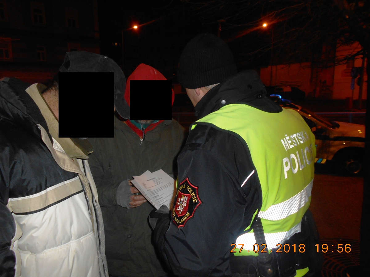 V těchto mrazivých dnech navštěvují strážníci městské policie místa, kde se zdržují lidé bez domova a vysvětlují jim, jaká nebezpečí jim hrozí ve dnech, kdy teplota vzduchu, hlavně v noci , klesá hluboko pod bod mrazu. Dále bezdomovce informují o možnostech, kam a na koho se mohou obrátit v případech, kdy nemají kde spát nebo nemají co jíst. Po tomto poučení jim předávají leták, ve kterém jsou uvedeny adresy a kontakty na pracovníky charitativních organizací.