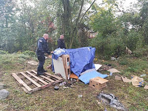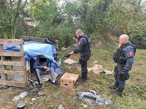 Dne 18.10.2023 v dopoledních hodinách, byl v ulici Dobětická v centru města na veřejném prostranství zjištěn kontrolní činností hlídky strážníků nepořádek a provizorní přístřešek. Společně s hlídkou strážníků ze skupiny operačního zákroku bylo zjištěno, že v obydlí se nachází dvě spící osoby bez domova. Na dotaz hlídky, proč si vybraly toto frekventované místo, muž a žena odpověděli, že obydlí se zde již nacházelo, a proto využili možnosti k nocování. Oba dotyční byli hlídkou poučeni a následně vykázáni z místa. Nepořádek a samotné přístřeší bude odklizeno pracovníky obecně prospěšných prací, zařazených k výkonu trestu u městské policie, což bylo provedeno hned druhého dne.