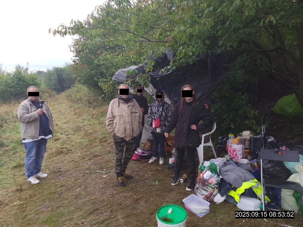 Dne 15.9.2025 v 08,50 hod., byla na základě oznámení občana provedena opakovaná kontrola, zaměřená na lidi bez domova, kteří si své provizorní příbytky postavili na louce u lesa na Střížovickém vrchu, v prostoru nad prodejnou Toyota. Hlídka na místě zjistila šest bezdomovců, u kterých se nacházel muž středního věku, jenž se vydával za aktivistu, který údajně hájí zájmy a práva bezdomovců. Ten si také celý průběh kontroly zaznamenával na videozáznam. Dále strážníci upozornili bezdomovce na fakt, že se nacházejí v prostoru, který slouží myslivcům k odstřelu divokých prasat. Po řádném poučení byli bezdomovci z místa hlídkou vykázáni.