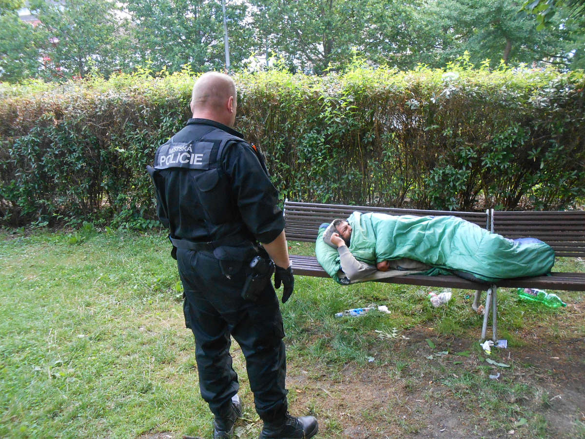 Ve Smetanových sadech řešila hlídka strážníku bezdomovce, který spal na lavičce.