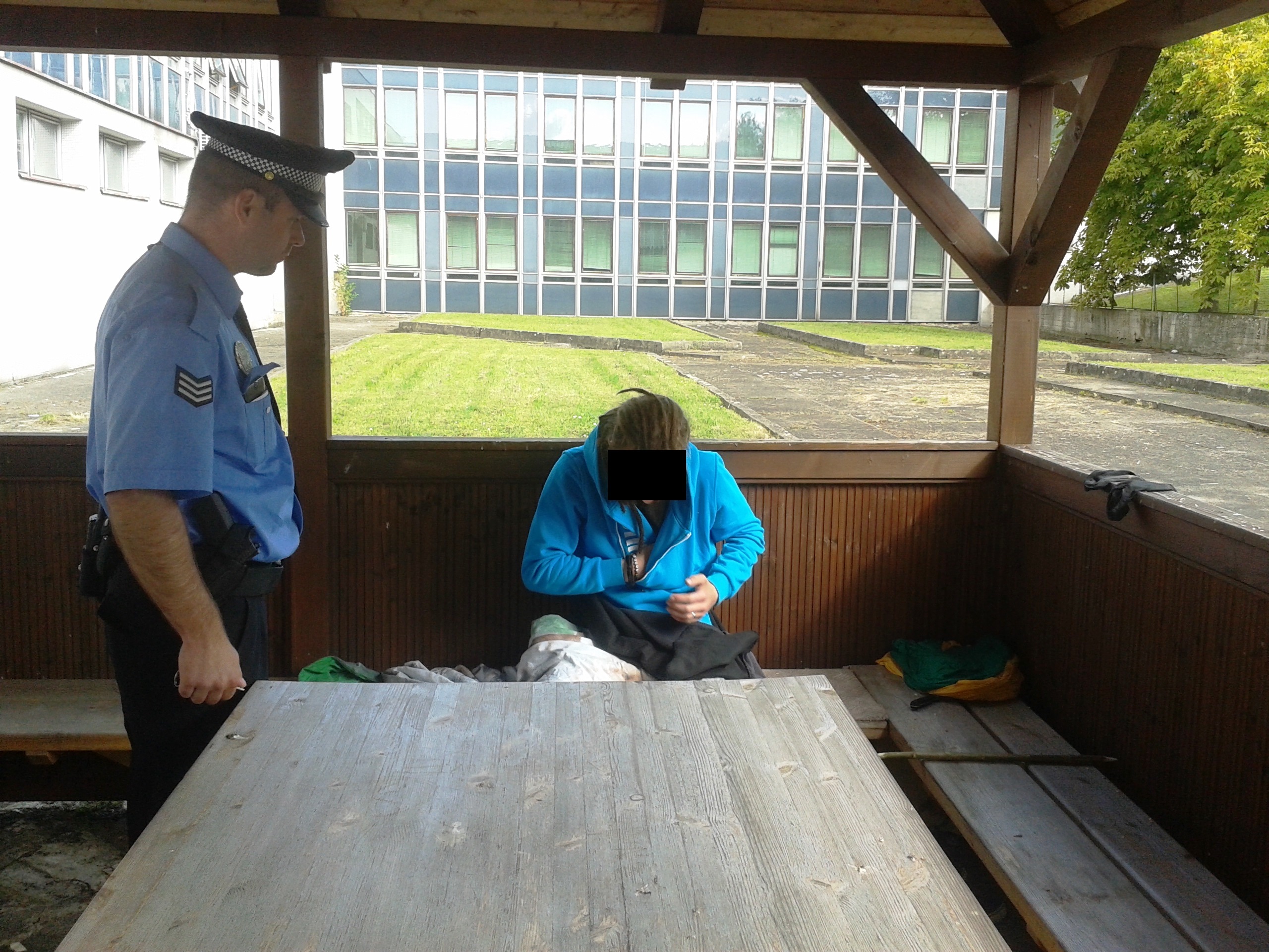 Dne 28.8.2017 v 10,00 hod., byla na žádost operačního střediska městské policie vyslána hlídka strážníků do objektu mateřské školy v ulici Mírová, kde dle oznamovatele měl v tamním altánku spát bezdomovec. Strážníci na místě zjistili Daniela N.(1994), kterého po probuzení a řádném poučení, kam a na koho se má obrátit v případě, že nemá kde spát, z objektu vykázali.