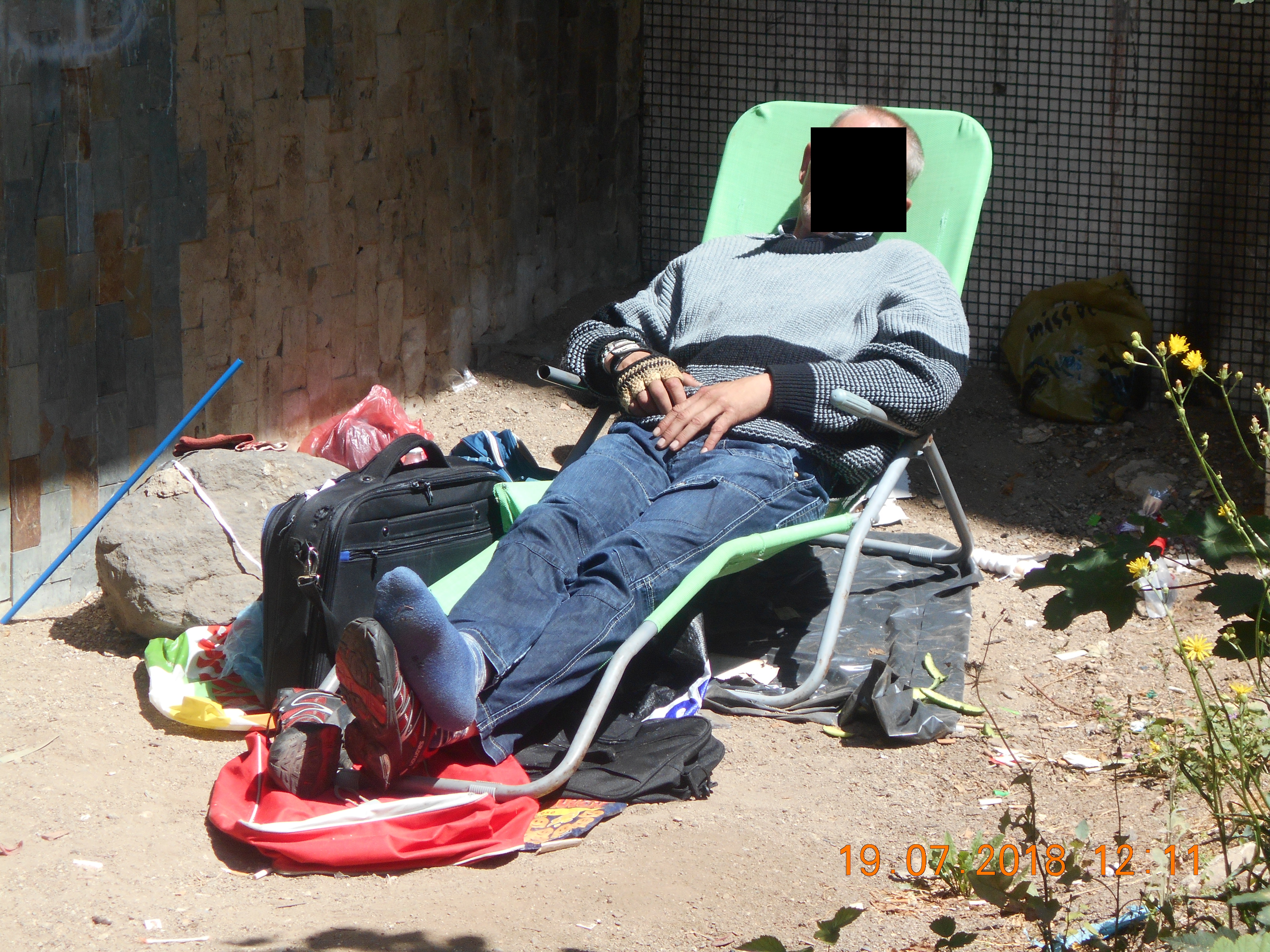 Dne 19.7.2018 v 12,10 hod., prováděla hlídka strážníků pochůzkovou činnost v obvodu Severní Terasy, kde si v zadním traktu místního gymnázia všimla bezdomovce středního věku, který zde spal a okolo sebe měl na zemi značný nepořádek. Hlídka muže vzbudila a dotyčného donutila nepořádek po sobě uklidit. Po řádném poučení byl bezdomovec strážníky z místa vykázán.