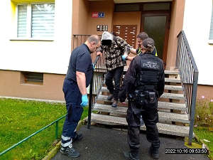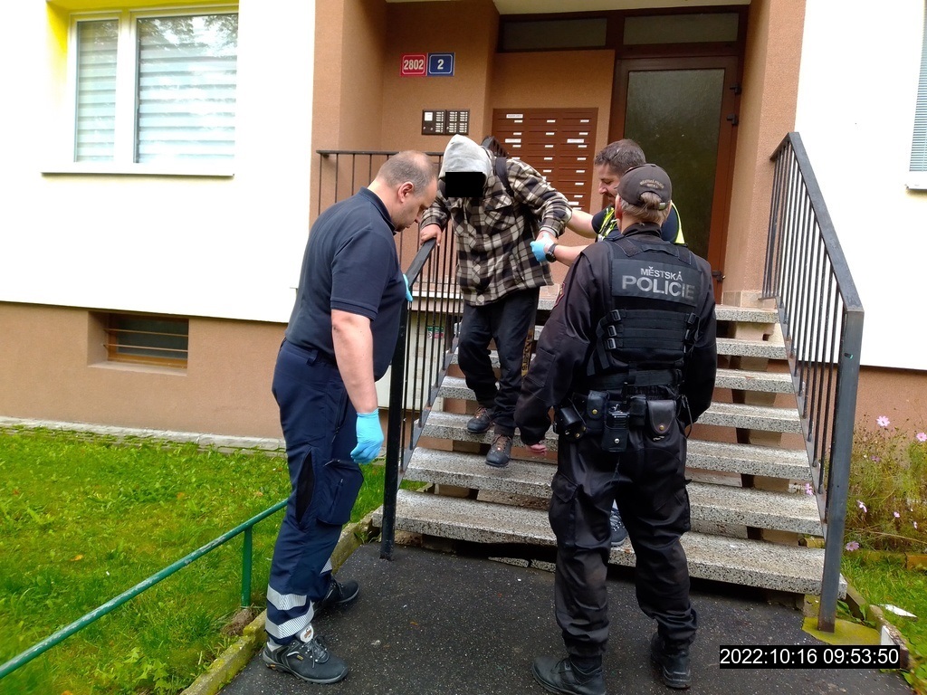 Dne 16.10.2022 v 09,25 hod., prováděla hlídka strážníků kontrolní činnost v obvodu Severní Terasy, kde je v ulici Stříbrnická zastihla zpráva o bezdomovci, který dle oznamovatelky měl ležet u vchodu domu v ulici Maková 2. Po příjezdu hlídky na místo byl strážníky nalezen muž středního věku, který strážníkům sdělil, že je mu špatně, proto zde leží. Vhledem k tvrzení dotyčného byla na místo přivolána zdravotní záchranná služba, která si muže od hlídky převzala a odvezla ho do Masarykovy nemocnice k vyšetření.