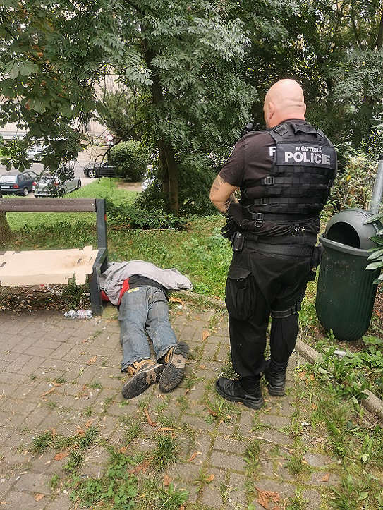 Dne 14.9.2023 v 10.50 hod., telefonovala na tísňovou linku městské policie oznamovatelka, která operátorovi sdělila, že v parku v ulici W. Churchilla leží neznámý muž. Na místo byla vyslána hlídka strážníků ze skupiny operačního zákroku, která dotyčného nalezla v neutěšeném zdravotním stavu. Muž měl ztuhlé tělo (horní i dolní končetiny bez možnosti ohybu), dýchal, ale na žádné podněty nereagoval. Hlídka muži poskytla první pomoc (umístění do stabilizované polohy a kontrola životních funkcí) a na místo přivolala zdravotní záchrannou službu. Do příjezdu zdravotníků se strážníkům nepodařilo s mužem navázat komunikaci. Vzhledem k zdravotnímu stavu dotyčného, byl muž zdravotní záchrannou službou převezen do Masarykovy nemocnice k vyšetření. Po převozu do nemocnice byli strážníci městské policie obvodu Město kontaktováni Policií ČR s žádostí o ztotožnění dané osoby z důvodu znalosti místních poměrů. Šetřením strážníci zjistili data k uvedené osobě, které předali Policii ČR.