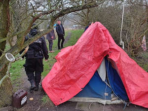 Odstranění bezdomoveckého stanu na Mariánské skále.