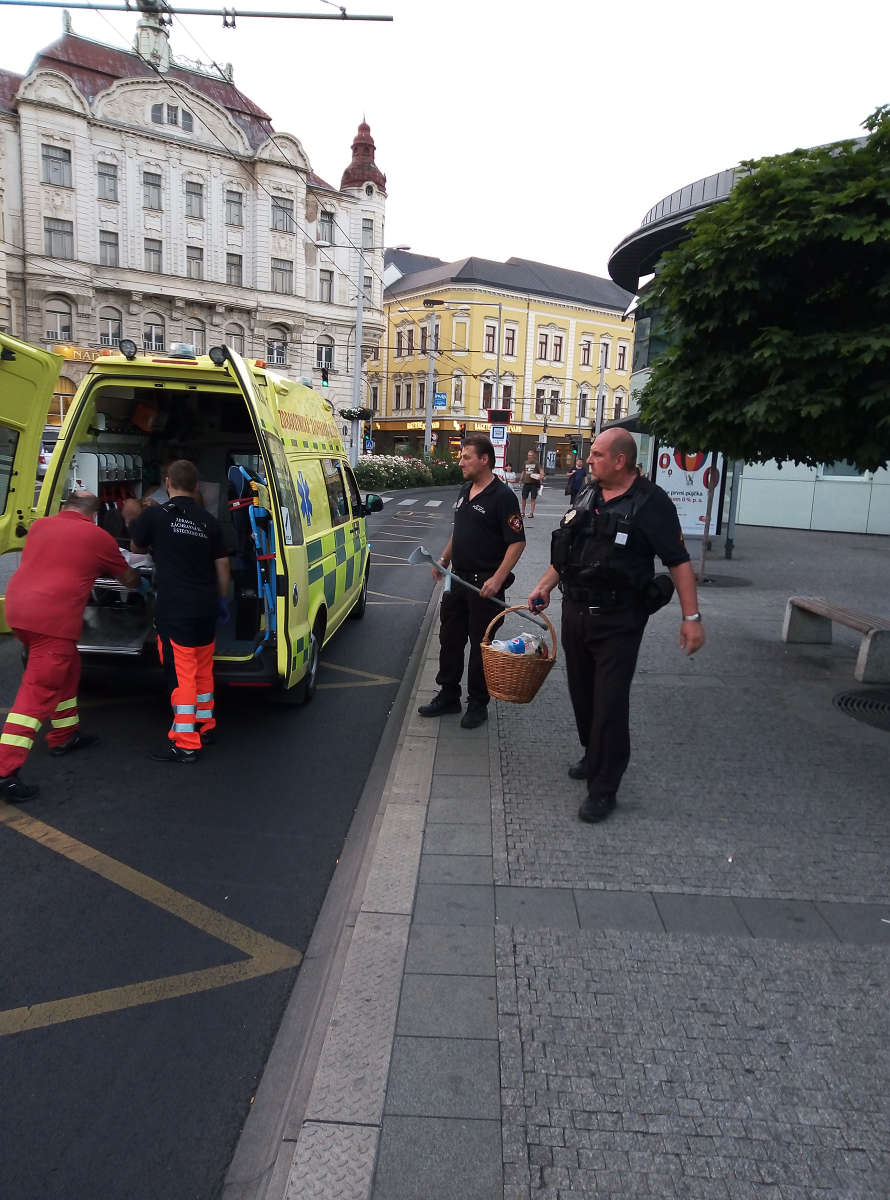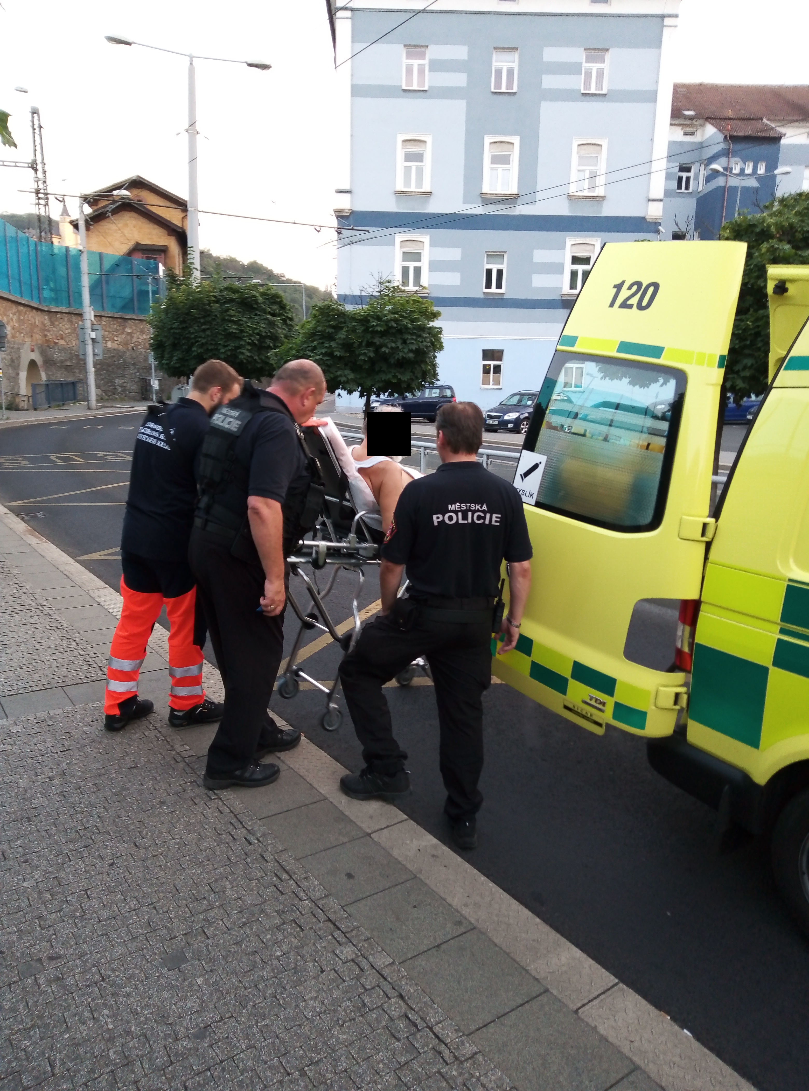 Dne 26.6.2019 ve večerních hodinách, při bezpečnostní akci v centru města, byl strážníky před halou vlakového nádraží spatřen muž vyššího věku, který seděl na lavičce a ztěžka dýchal. Dále bylo zjištěno, že má dotyčný zřejmě zánět žil (obvázaná noha) a již nemá sílu dopravit se vlastními silami do zdravotnického zařízení. Hlídka na místo neprodleně přivolala zdravotní záchrannou službu, která si seniora převezla na ošetření do Masarykovy nemocnice. Do příjezdu zdravotníků hlídka kontrolovala jeho zdravotní stav.