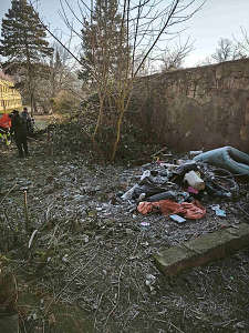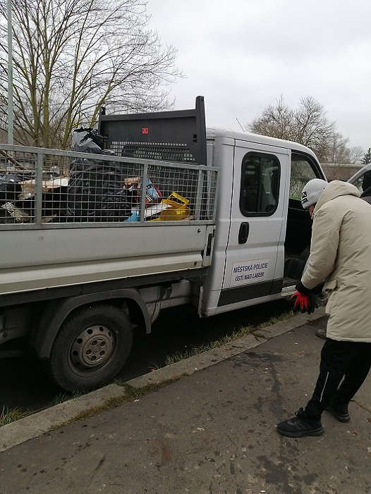 Tento týden pokračovalo odklízení černých skládek v centru města a v obvodu Krásného Března u Zámeckého parku. Někdy se chce věřit, že tyto skládky snad rostou sami od sebe ze země. Bohužel to není výtvor přírody, ale práce našich nezodpovědných spoluobčanů. Na některá místa se alternativně odsouzení, kteří si svůj trest odpykávají u městské policie, vrací pravidelně, a to i několikrát v měsíci. Nejinak tomu bylo i v ulici Masarykova, kde by černé skládky málokdo očekával. I přes časté kontroly hlídek strážníků se nedařilo některá zákoutí uhlídat před bezdomovci, kteří si zde budovali svá provizorní bydlení. Nakonec všem zúčastněným došla trpělivost a po posledním úklidu byl tento „úkryt“ zazděn.