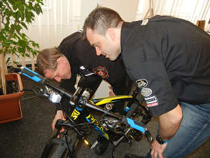 Vhledem k tomu, že i v našem městě začíná stále více lidí sportovat pro zdraví a mezi nejoblíbenější sporty mezi širokou veřejností patří jízda na kole, nabízí se otázka, zda jsou bicykly dosti ochráněné proti krádežím, ke kterým čas od času dochází. Z tohoto důvodu přijala primátorka města Věra Nechybová se svým náměstkem Pavlem Dufkem zástupce firmy, která se zabývá zabezpečením jízdních kol, a která je schopna bezplatně poskytnout městské policii počítačový program, jenž je během okamžiku schopen rozpoznat bicykl, který by svému majiteli odcizen. Tato firma nabízí více prvkovou ochranu kola a následnou registraci v mezinárodní databázi. Systém nechrání jenom rám kola, ale i všechny jeho důležité a hlavně drahé komponenty. Pro zloděje se takto označené kolo stává nechtěným zbožím. Jedinečnost identifikačního značení spočívá v tom, že každé balení má svůj unikátní kód, takže každé kolo dostane tímto své DNA. Navíc u vybraných pojišťoven můžete získat slevu na pojištění kola nebo domácnosti. Datatag funguje jako mezinárodní centrální registr majetku včetně jízdních kol, motorových vozidel, elektroniky, sportovní výbavy a vlastně čehokoli, co se dá ukrást. Zásadní rozdíl proti běžné evidenci – například výrobních čísel rámů v databázi Městské policie - spočívá v tom, že značení Datatag je jednak neviditelné (a tudíž se dá těžko zfalšovat), a za druhé pokrývá všechny díly, které stojí za ukradení a dají se zpeněžit. Když někdo ukradené kolo rozebere na díly, a ty pak rozprodá nebo třeba přes známého v servisu, je prakticky z obliga, protože kola, vidlice ani ostatní drahé komponenty žádné výrobní číslo nemají, a tudíž se po odmontování nedá prokazatelně určit jejich majitel. S argumenty typu "měl jsem tam škrábanec" toho na policii nebo u soudu asi moc neuhádáte. Kolo označené technologií Datatag je na tom podstatně lépe, protože se každý jeho díl dá zpětně kdykoli identifikovat, a zjistit jak informace o kole z kterého pochází, tak i jejího majitele. Jak takové značení vypadá? Na první pohled je vidět jenom výstražný štítek, ale kdybyste chtěli najít jeho funkční prvky, potřebujete minimálně UV lampu, a k přečtení registračních kódů pak mikroskop. Sada značení na kolo se totiž skládá z několika různých prvků. Prvním z nich je neviditelný číselný kód, vyleptaný do povrchu laku na rámu a vidlici. Ten se dá přečíst jenom pod UV světlem, a obsahuje unikátní registrační kód. Dalším značícím prvkem jsou mikrotečky o průměru 0,5 milimetru. Těch je v sadě celá tisícovka, což bohatě stačí k otečkování každého dílu na kole, a z každé se pod mikroskopem dá vyčíst jedinečný kód. Tečky nalepené směsí laku a UV reflexního lepidla (něco jako lak na nehty) není úplně snadné z povrchu odstranit, a nikomu se taková piplačka hlavně nemůže vyplatit. Seškrabávání teček se neobejde bez poškození povrchu, a zloděj navíc nikdy nemá stoprocentní jistotu, že na žádnou nezapomněl. Kromě viditelných výstražných samolepek je kolo označené ještě výstražnou samolepkou, která potencionálního zloděje od krádeže odradí. Značení Datatag tak má hlavně preventivní funkci, protože z takto ocejchovaného kola se pro nenechavce stává horké zboží.