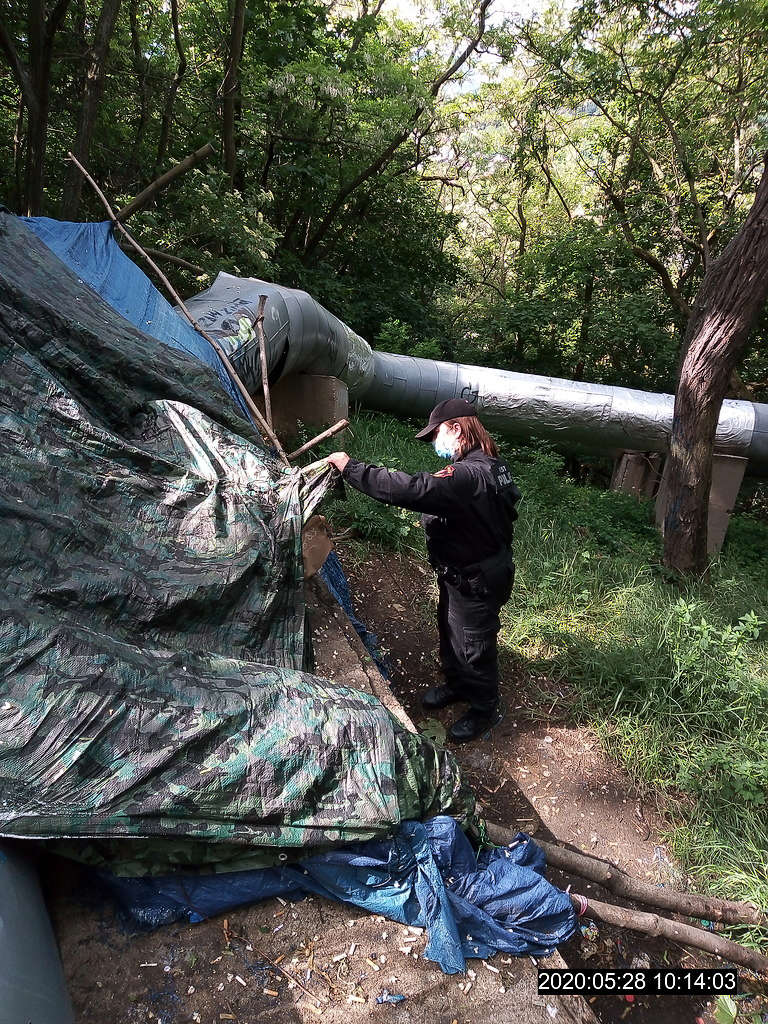 Dne 28.5.2020 v 10,00 hod., byla v obvodu Severní Terasy provedena opakovaně depistáž, zaměřená na lidi bez domova, kteří si svá provizorní obydlí budují u veřejně prospěšných zařízení a jejich blízkém okolí a díky tomu, že při ohřívání potravin používají otevřeného ohně, hrozí nebezpečí poničení těchto zařízení. Při tomto opatření se strážníci a pracovníci odboru sociálních věcí místního úřadu zaměřili na místa, kde se při minulé kontrole zdržovali bezdomovci, kteří svým jednáním porušovali zákonné normy. Tato kontrola odhalila další tři nová místa, kde bezdomovci přebývají a kde bylo strážníky kontrolováno pět osob, jenž se da daném místě nacházely. Všechny osoby byly hlídkou poučeny o jejich protiprávním jednání a poté byly strážníky z místa vykázány.