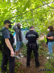 Dne 22.7.2021, v čase od 9.15 – 11.00 hod., proběhla v obvodu Severní Terasy preventivně bezpečnostní akce, zaměřená na lidi bez domova, kteří ke svému provizornímu bydlení využívají veřejná prostranství a svým chováním obtěžují kolemjdoucí veřejnost. Této akce se vedle strážníků zúčastnili i pracovníci sociálního odboru Úřadu městského odboru Severní Terasa. Při depistáži byla sociálními pracovníky bezdomovcům nabízena pomoc při vyřízení dokladů a byly jim darovány respirátory. Dále byli bezdomovci informováni o možnostech, kam a na koho se mohou obrátit v situacích, kdy nemají co jíst nebo nemají kde spát. Při tomto opatření bylo zjištěno pět bezdomovců, kteří byli z kontrolovaných míst strážníky vykázáni.
