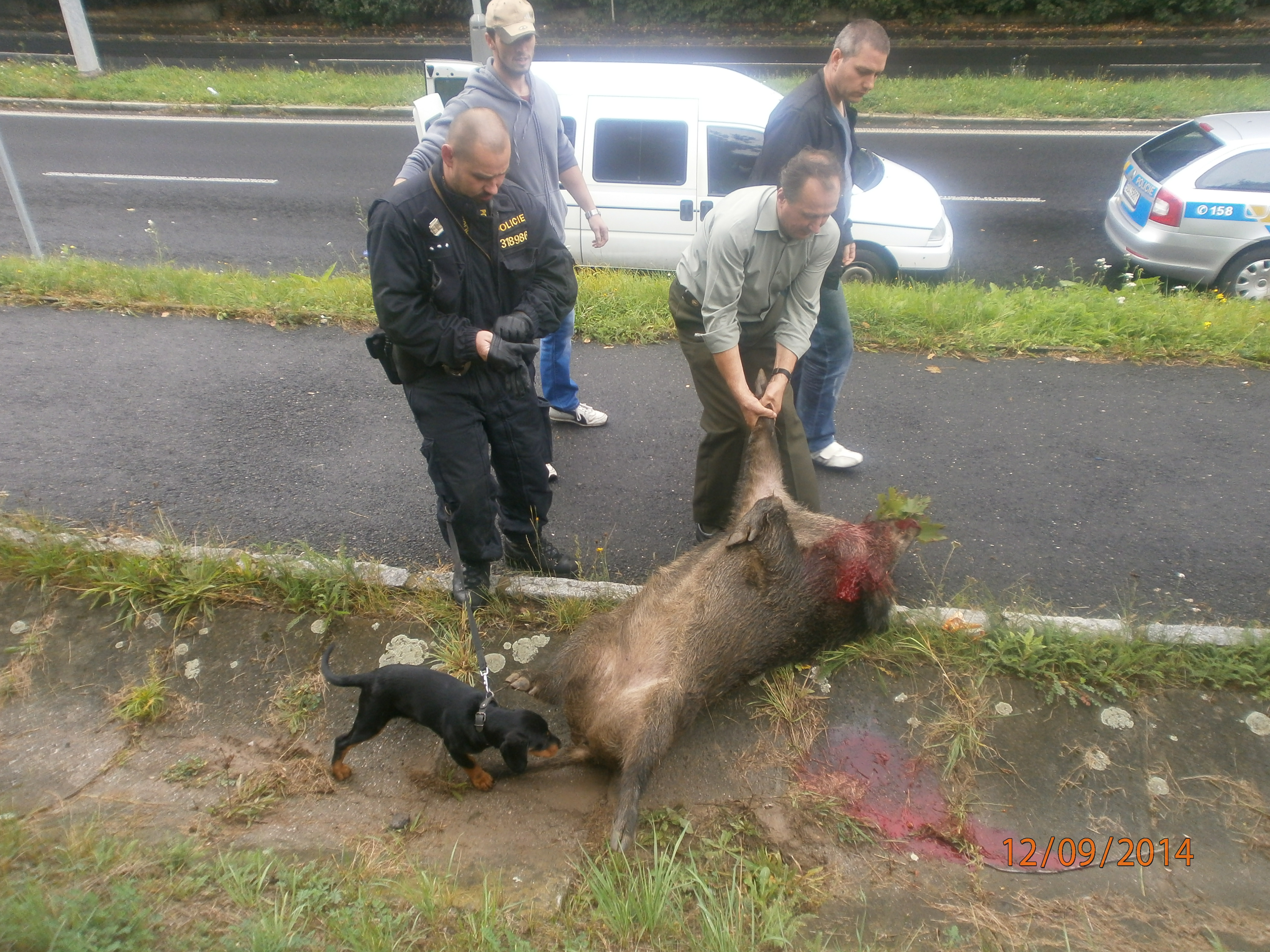 Dne 12.9.2014 v 13,00 hod., telefonoval na tísňovou linku městské policie neznámý muž, který operátorovi oznámil, že v ulici Sociální Péče se pohybuje v okolí vozovky divoké prase a může dojít ke střetu s projíždějícími vozidly. Na místo byla vyslána hlídka strážníků, která po příjezdu zjistila, že prase již bylo zastřeleno přivolaným myslivcem. Na místo se dostavila i Policie ČR, která společně se strážníky pomohla divočáka myslivci naložit do vozidla. Ten zastřelené zvíře z místa odvezl.