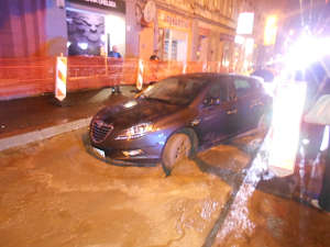 Dne 20.11.2018 v 19,15 hod., byla na žádost operačního střediska městské policie vyslána hlídka strážníků do ulice Masarykova, kde nepozorný řidič osobního vozidla vjel do řádně označeného vyfrézovaného místa na vozovce, které bylo čerstvě zalito betonovou směsí. Na místě se již nacházel zástupce správce komunikace, který strážníky požádal o usměrňování dopravy. Na místo byla přivolána odtahová služba a hasiči, kteří po vyproštění vozidla z betonu celý vůz omyli a poté vyčistili i vozovku.