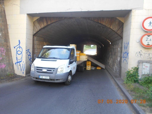 Dne 7.5.2020 v 07,20 hod., byla na žádost operačního střediska městské policie vyslána hlídka strážníků do ulice Střekovské nábřeží k restauraci Labská Bašta, kde se dle oznamovatele měla stát dopravní nehoda. Po příjezdu na místo strážníci zjistili, že do tunelu vjelo vozidlo se zvýšenou nástavbou vozidla a touto nástavbou, která byla vyšší než světlost tunelu, narazilo do horní konstrukce mostu. Nástavba vozidla byla nárazem utržena a ležela na vozovce uprostřed tunelu. Další nosné části nástavby byly částečně na vozidle. Při nehodě nedošlo k žádnému zranění osob. Hlídka strážníků na místo přivolala Policii ČR, která si případ převzala k šetření. Strážníci po dobu jejich konání usměrňovali dopravu až do doby, kdy se komunikace stala opět plně průjezdnou.