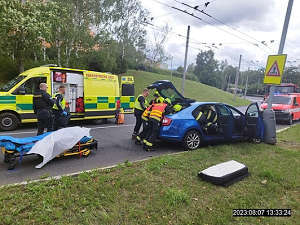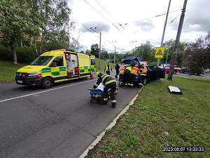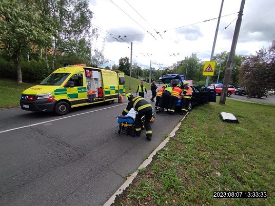 Dne 7.8.2023 při kontrolní činnosti, bylo hlídkou strážníků zjištěno, že v ulici Mezní došlo k dopravní nehodě. Na místě se již nacházely všechny složky IZS. Od velitele zásahu hasičů bylo zjištěno, že zde došlo ke zranění osoby a na jeho žádost byl v čase od 13:25-14:00 hod. hlídkou strážníků usměrňován provoz v ulici Mezní, a to z důvodu vyprošťování zraněné osoby z havarovaného vozidla. Dále bylo zjištěno, že řidič osobního vozidla narazil do lampy veřejného osvětlení, která byla následkem nárazu poškozena. Z vozidla nevytékaly žádné provozní kapaliny. Celou událost si na místě převzala hlídka Policie ČR - dopravní nehody k dalšímu šetření.