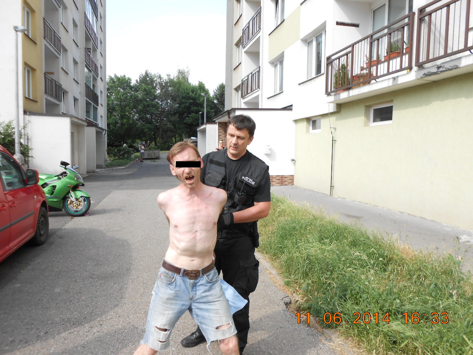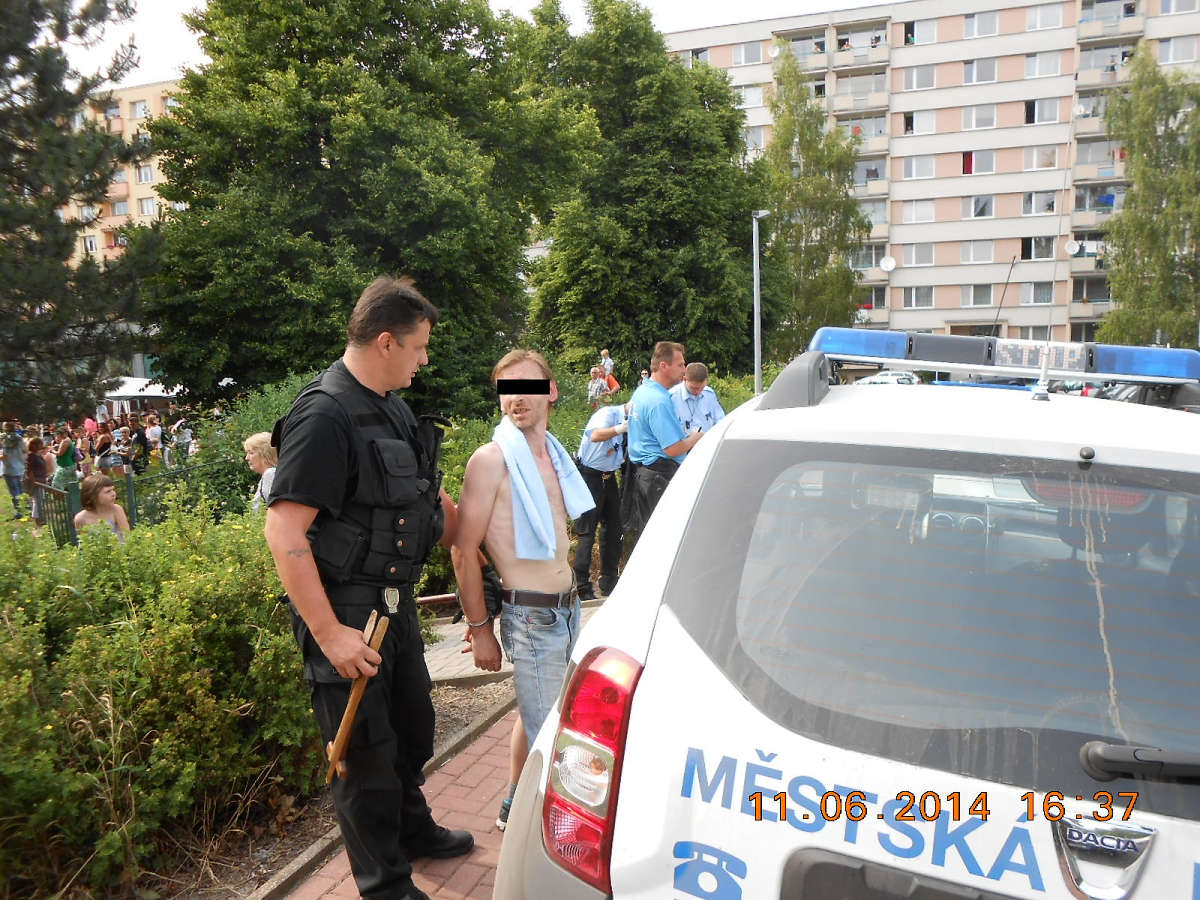 Dne 11.6.2014 v byla hlídka městských strážníků přivolána do ulice Větrná, z důvodu pohybu neznámého muže, který je ozbrojen dvěma klacky a svým chováním ohrožoval své okolí. Po příjezdu strážníků na místo dotyčný muž utekl před hlídkou do místní mateřské školy, kde obtěžoval děti. Vzhledem k tomu, že okolo muže se pohyboval jeho pes, který byl na volno a nebyl pod dozorem svého pána, byl německý ovčák strážníky odchycen a odvezen do městského útulku. Šetřením bylo zjištěno, že Petr P.(1973), verbálně napadá své sousedy, a že se zřejmě jedná o duševně narušeného člověka nebo narkomana. Na místo se dostavili i strážníci ze skupiny operativního zákroku, kteří jmenovaného zadrželi a převezli do Masarykovy nemocnice na psychiatrické vyšetření.