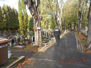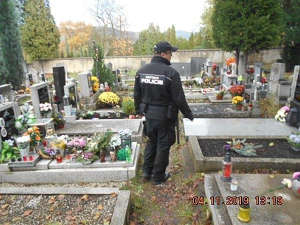 Během dušičkového období dohlíželi strážníci na pořádek na hřbitovech.