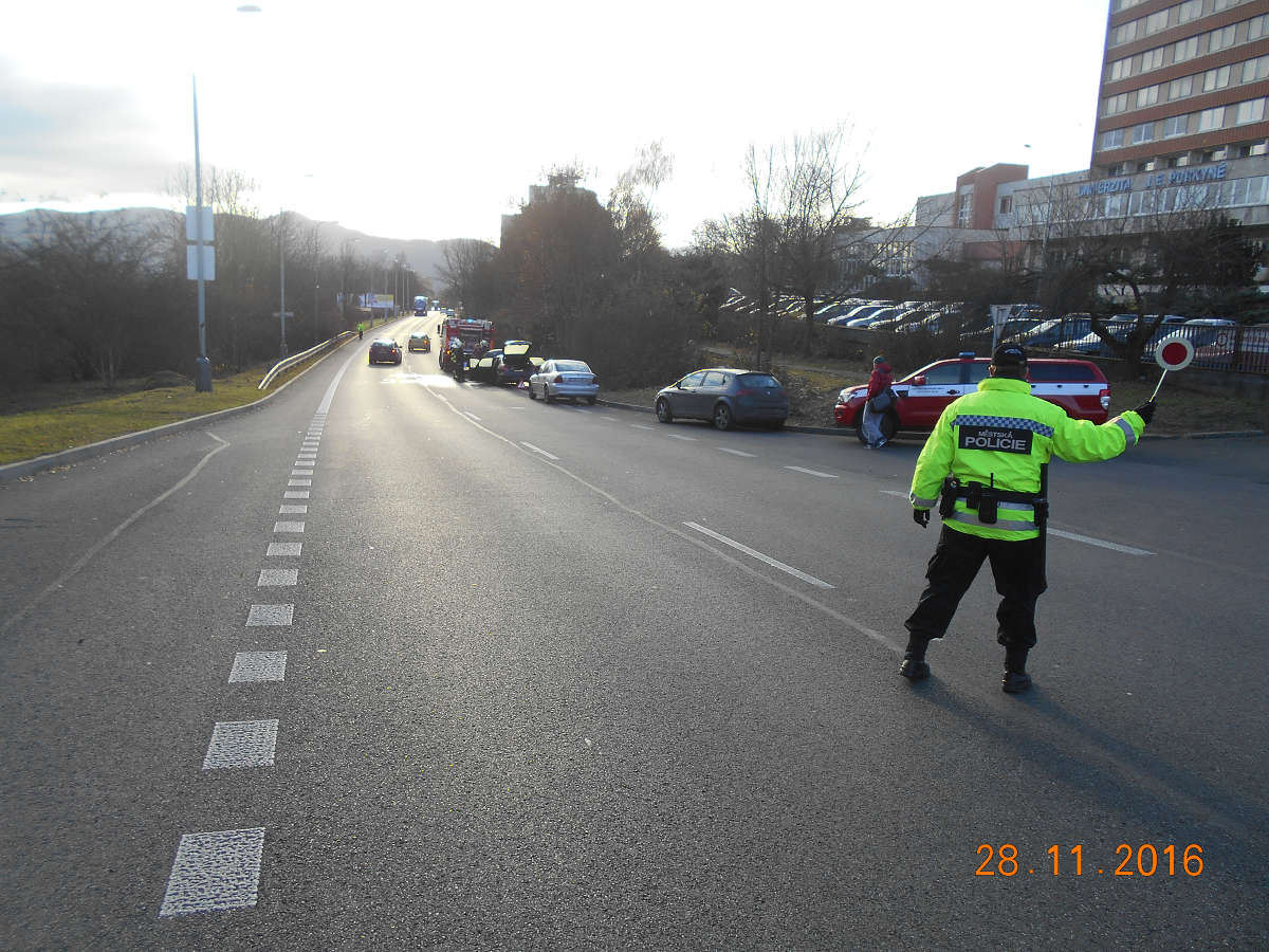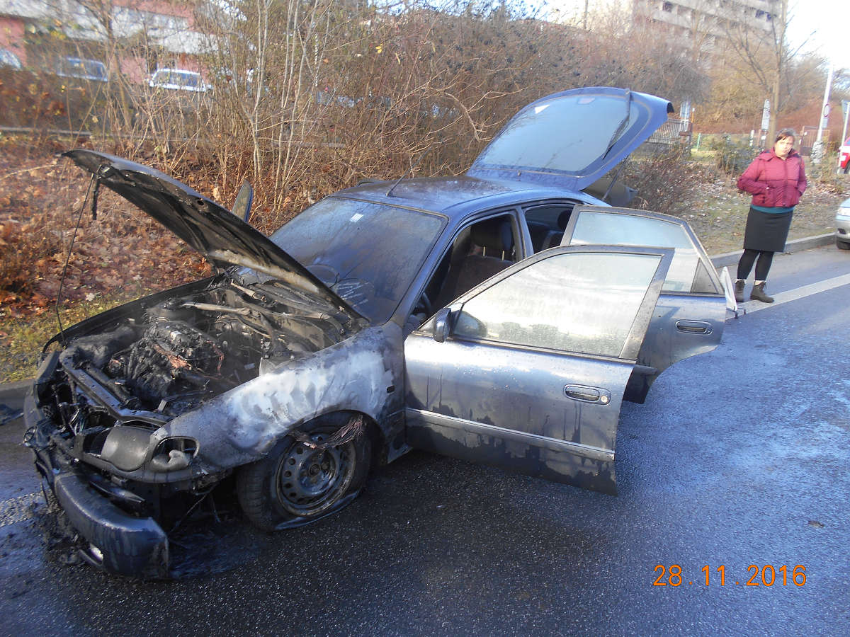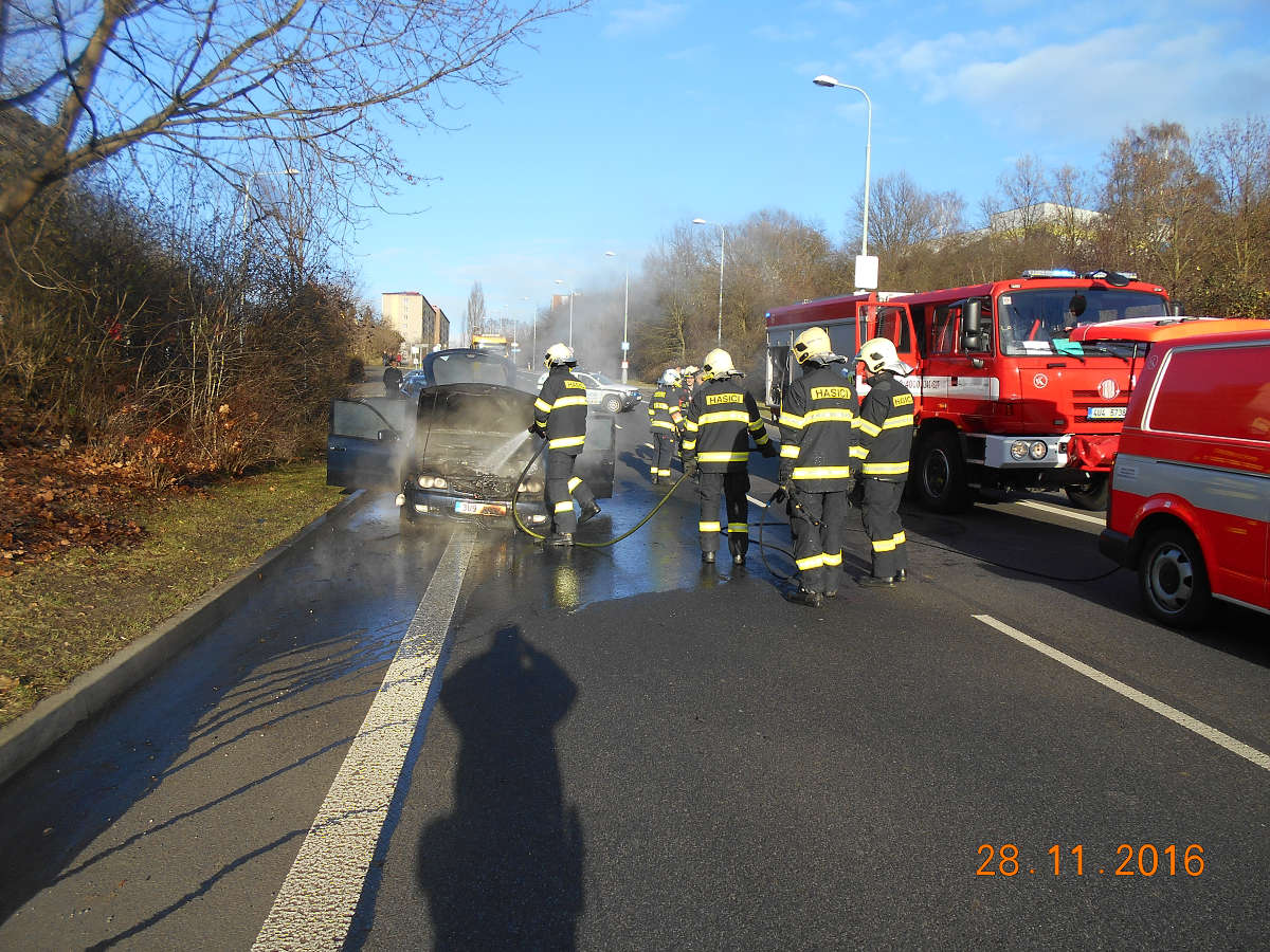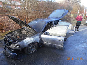 Dne 28.11.2016 v 09,25, byla na podnět oznamovatele vyslána hlídka strážníků do ulice Hoření, kde dle oznámení mělo hořet osobní vozidlo. Strážníci na místě zabezpečili prostor okolo požáru proti vstupu nepovolaných osob a na místo přivolali hasiče. Až do jejich příjezdu usměrňovali strážníci dopravu, a to z důvodu možného výbuchu hořícího vozidla. Jako majitelka vozidla byla zjištěna Eva J.(1981), bytem Varnsdorf.