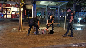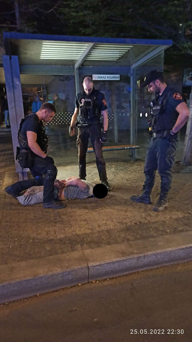 Dne 25.05.2022 v 21:58 hod., byly hlídky městských strážníků vyslány do ulice Hrnčířská, kam dle oznámení na tísňovou linku 156 mířil trolejbus městské hromadné dopravy č. 57, ve směru z Krásného Března, a ve kterém měla probíhat rvačka. Hlídky městské policie dorazily na místo v momentě, kdy trolejbus vjížděl do zastávky v ulici Hrnčířská. Z trolejbusu vystoupili dva mladíci, kteří se dle sdělení svědků události v trolejbuse neshodli a jeden z nich toho druhého fyzicky napadl. Po vyřešení celé situace se poškozený muž odebral z místa pryč, druhý, který byl stále agresivní a v silně podnapilém stavu, chtěl poté z místa odjet dalším vozem městské hromadné dopravy. Hlídkou byl však již předtím náležitě poučen, že ve stavu v jakém se nachází, má vstup do vozidel MHD zákonem zakázán. Tuto skutečnost si však muž nechtěl připustit a pokusil se do vozu dostat za použití násilí, kdy odstrčil a poté se pokusil udeřit strážníka, stojícího u vstupních dveří do trolejbusu. Ten však celou věc okamžitě vyřešil svedením útočníka na zem za pomoci donucovacích prostředků. Vzhledem k tomu, že dotyčný muž byl stále agresivní a svým chováním ohrožoval nejen strážníky, ale i sebe, byla agresorovi nasazena pouta. Čtyřiatřicetiletého muže z Ústecka, u kterého byla dechovou zkouškou zjištěna hodnota 2.38 promile alkoholu v dechu, si poté převzali policisté z obvodního oddělení Policie ČR k dalšímu šetření. Nakonec muž skončil na protialkoholní stanici v Teplicích.