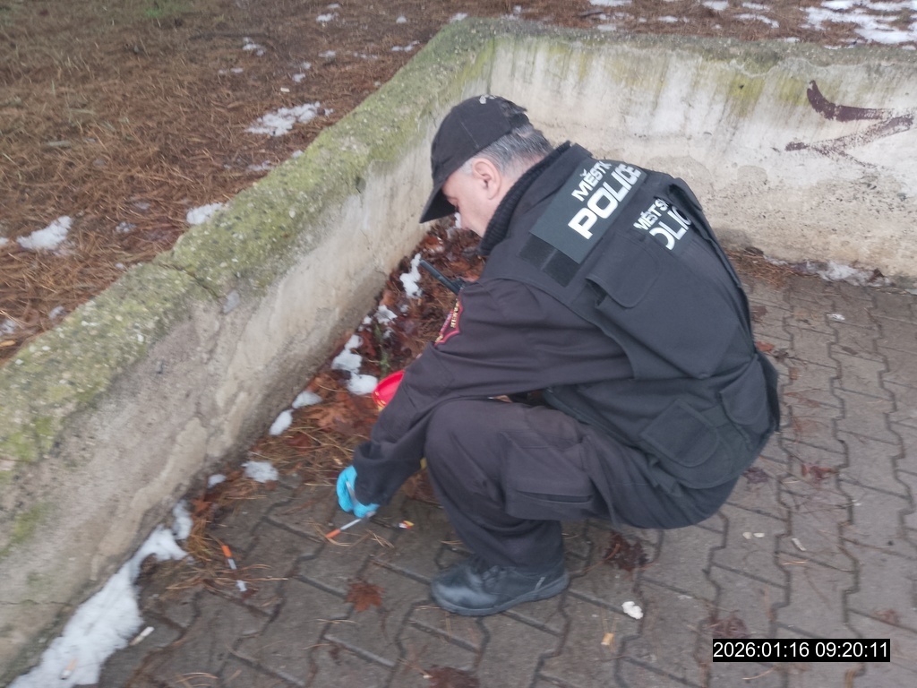 Dne 16.1.2026 v 09,20 hod., byla vyslána hlídka strážníků do ulice Šrámkova na zastávku MHD, kde se dle oznamovatelky měly nacházet injekční stříkačky. Strážníci na místě nalezli 3 použité injekční stříkačky, které sesbírali a uložili do přineseného kontejneru na infekční materiál.