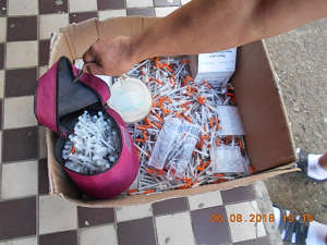 Dne 6.8.2018 v 19,10 hod., byl na žádost operačního střediska městské policie proveden výjezd strážníků do ulice Truhlářova, odkud na tísňovou linku městských strážníků telefonoval oznamovatel, který operátorovi sdělil, že při vyklízení sklepa po minulé nájemnici nalezl papírovou krabici s několika sty injekčních stříkaček. Strážníci na místě injekční stříkačky od oznamovatele převzali a příští den odvezli k likvidaci do firmy AVE Ústí nad Labem.