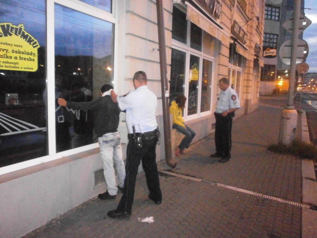 Dne 12.07.2012 v 04.40 hodin si všiml strážník, který obsluhoval kamerový systém dvojice osob, která se snažila v ulici Revoluční demontovat okapový svod. Na místo byla ihned vyslána hlídka strážníků, která zde zadržela Jana O.(1990) a Lucii J.(1991). Šetřením bylo zjištěno, že jmenovaným se podařilo odstranit pojistné matky z kotevních šroubů, ale ke krádeži samotného svodu se díky rychlému zákroku strážníků již nedostali. Po zadokumentování celého případu, byl tento předán k dořešení příslušné přestupkové komisi.