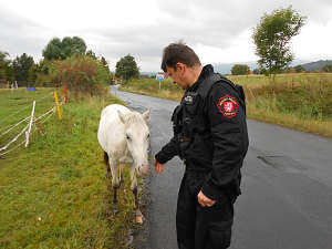 Po obci Habrovice pobíhaly volně koně po vozovce a ohrožovaly bezpečnost silničního provozu.