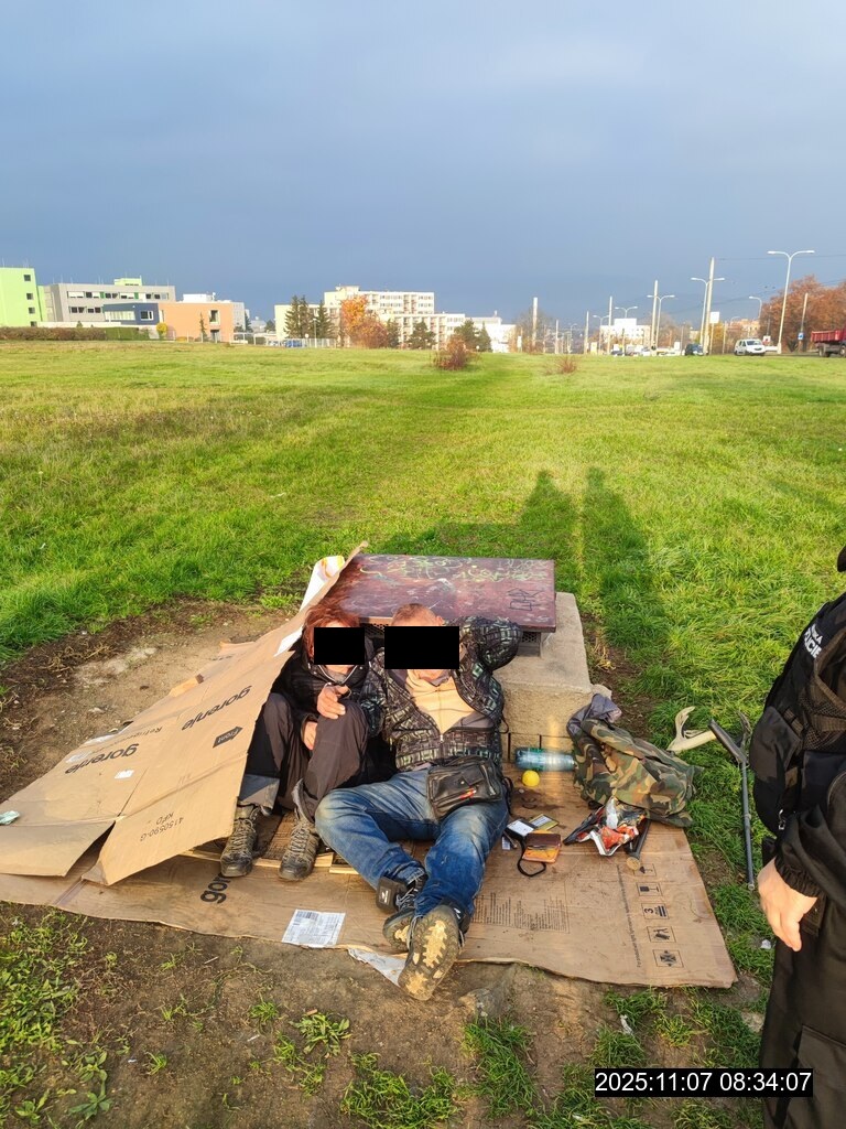 Dne 7.11.2025 v 08:30 hod., byla na žádost operačního střediska městské policie vyslána hlídka strážníků do ulice Sociální péče, z důvodu telefonického oznámení na tísňovou linku městské policie, kdy oznamovatel operátorovi sdělil, že u tepelného kolektoru ( naproti Hotelovému domu ) se zdržují bezdomovci. Po příjezdu hlídky na místo byla provedena kontrola, při které byly zjištěny dvě osoby, které si na veřejném prostranství neoprávněně postavily provizorní bydlení a v něm přespávaly. Strážníci po řádném poučení, oba bezdomovce z místa vykázali. Nepořádek, který po bezdomovcích na místě zůstal, uklidili pracovníci ÚMO- Severní Terasa.