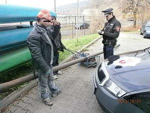 Dne 31.10.2012 v 13,00hod., prováděla hlídka městských strážníků pochůzkovou činnost v obvodu Klíše, když si v ulici Klíšská všimla dvou mužů, kteří vezli na ručním vozíku dlouhou kovovou trubku. Z tohoto důvodu strážníci dvojici mužů vyzvala k prokázání totožnosti a požadovala na nich, aby jim vysvětlili, kde k tomuto nákladu přišli. Z předložených občanských průkazů bylo zjištěno, že se jedná o Gustava M. (1980) a Luboše P. (1985). Po bližším ohledání kovové trubky hlídka zjistila, že se jedná o svodidlo, na kterém byly patrny čerstvé stopy po lámání kovu. Jmenovaní se strážníkům přiznali, že svodidlo, které měřilo 7,5 m, ulomili v ulici Štefánikova a že ho chtěli prodat ve sběrných surovinách. Po zadokumentování celé události byl jmenovaným náklad odebrán i s ručním vozíkem a případ bude dořešen u příslušného správního orgánu.