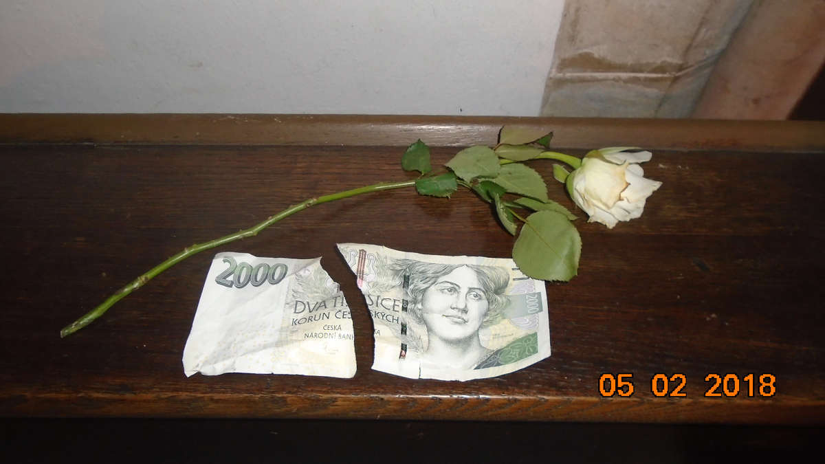 Dne 5.2.2018 v 18:50 hodin, byla na žádost operačního střediska městské policie vyslána hlídka strážníků do objektu kostela Nanebevzetí Panny Marie v ulici U Kostela, odkud telefonoval na tísňovou linku městské policie oznamovatel, který operátorovi sdělil, že se zde nachází osoba, která z kasy na příspěvky odcizila finanční hotovost. Po příchodu hlídky na místo se k ní přihlásil oznamovatel události, který strážníkům označil osobu středního věku, která se měla krádeže dopustit. Oznamovatel dále uvedl, že dotyčný muž pomocí stonku řezané květiny vytáhl z otvoru kasičky určené pro vhazování finančních darů bankovku, v nominální hodnotě dva tisíce korun. Poté se podezřelý snažil z místa odejít, v čemž se mu oznamovatel snažil zabránit, přičemž došlo mezi nimi k potyčce, při které došlo k přetržení bankovky. Po tomto zjištění strážníci podezřelého muže z Teplicka zadrželi a na místo přivolali Policii ČR, která si případ převzala k dalšímu šetření.