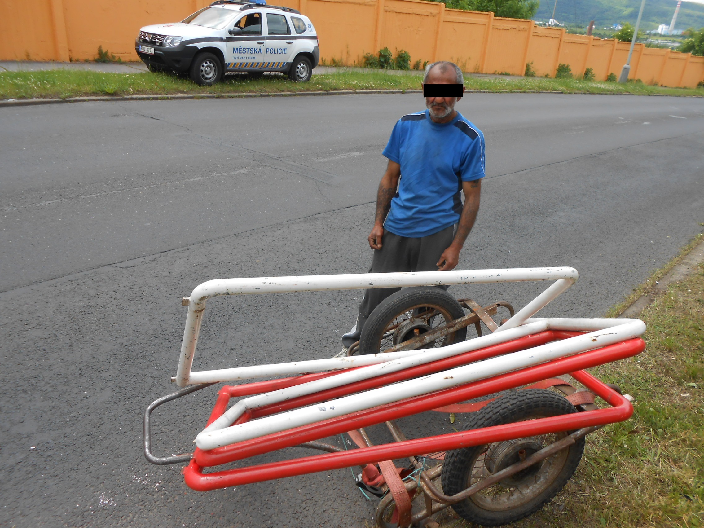 Dne 25.5.2017 v 10,58 hod., prováděla hlídka strážníků kontrolní činnost v obvodu Město, kde si v ulici Okružní všimla muže, který tlačil příruční vozík, naložený zánovním zábradlím. Dotyčný po spatření hlídky se před ní dal na útěk, ale brzy byl strážníky dostižen a zadržen. Šetřením bylo zjištěno, že se jedná o Andreje P.(1962), bytem Trmice. Na dotaz strážníků, kde k tak vzácnému nákladu přišel, dotyčný odpověděl, že vše nalezl na křižovatce ulic Velká Hradební – Bratislavská. Vzhledem k tomu, že se domníval, že zábradlí nikomu nepatří, naložil jmenovaný zábradlí na vozík a chtěl ho odvézt do sběrných surovin za účelem jeho prodeje. Strážníci muži náklad odebrali a celý případ bude dořešen u příslušné přestupkové komise.