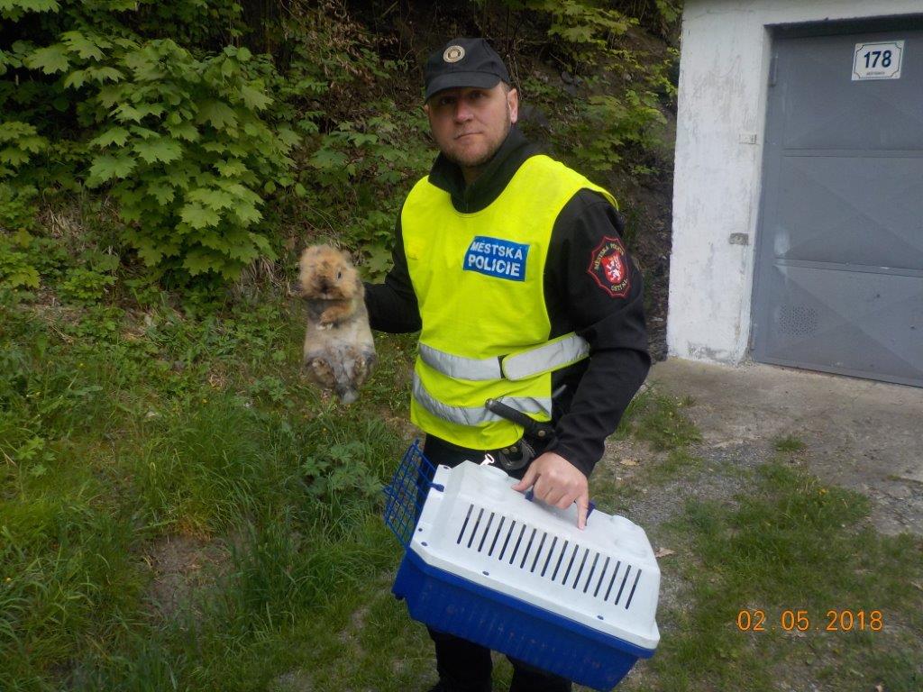 Dne 2.5.2018 v 10,20 hod., prováděla hlídka strážníků pochůzkovou činnost v obvodu Neštěmic, kde ji zastihla zpráva, že v ulici Na Výšině pobíhá po vozovce zřejmě zajíc a hrozí, že způsobí dopravní nehodu. Strážníci na místě zjistili, že se jedná o zakrslého králíka, kterého se jim podařilo odchytit a umístit v městské útulku pro opuštěná zvířata. Odchycený králík se stal tento týden již třetím odchyceným zvířetem na území města, kterého městská policie zachránila.
