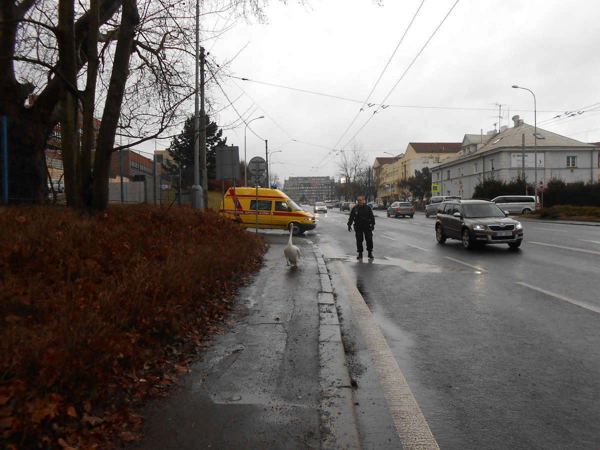 Dne 21.2.2017 v 09,40 hod., telefonoval na tísňovou linku městské policie oznamovatel, který operátorovi sdělil, že se v ulici Masarykova u zimního stadionu pohybuje po vozovce labuť a tím ohrožuje bezpečnost a plynulost silničního provozu. Strážníci na místě zastavili provoz aby vytvořili labuti prostor pro její bezpečný odlet. To se labuti po několika vteřinách také povedlo a provoz na zmiňované vozovce mohl zase bez jakýchkoli problémů pokračovat.