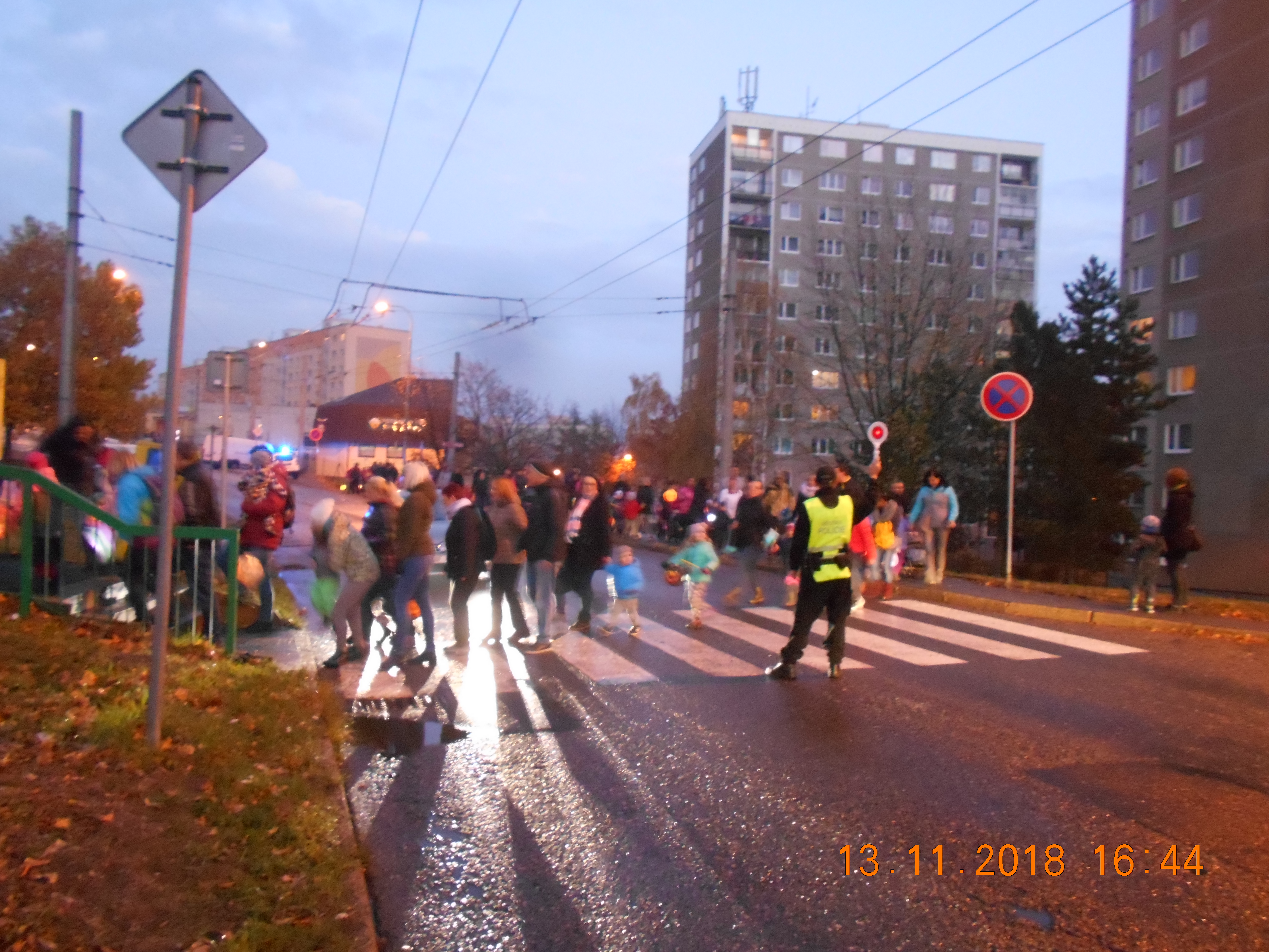 Strážníci zabezpečovali přechod pro chodce po kterém přecházel lampiónový průvod.
