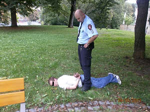 Dne 26.8.2103 v 16,20 hod., prováděla hlídka městských strážníků pochůzkovou činnost v ulici Palachova, když uslyšela volání o pomoc, které vycházelo z Městských sadů. Strážníci se ihned vydali směrem, odkud se volání o pomoc ozývalo a po padesáti metrech spatřili neznámého muže, který násilím odcizil napadené ženě kabelku a snažil se z místa činu uprchnou. Strážníci začali muže pronásledovat a na pomoc si přivolali nejbližší hlídku, která prováděla kontrolní činnost v ulici Masarykova. Zanedlouho byl útočník strážníky dostižen, a protože při zadržení kladl aktivní odpor, při které udeřil jednoho ze zasahujících strážníků pěstí do obličeje, byl hlídkou zpacifikován. Šetřením bylo zjištěno, že se jedná o Pavla M.(1978)a oloupenou ženou Eva K.(1941). Vzhledem k tomu, že zde bylo důvodné podezření ze spáchání trestného činu loupežného přepadení, byla na místo přivolána Policie ČR, která si celý případ převzala k dořešení.
