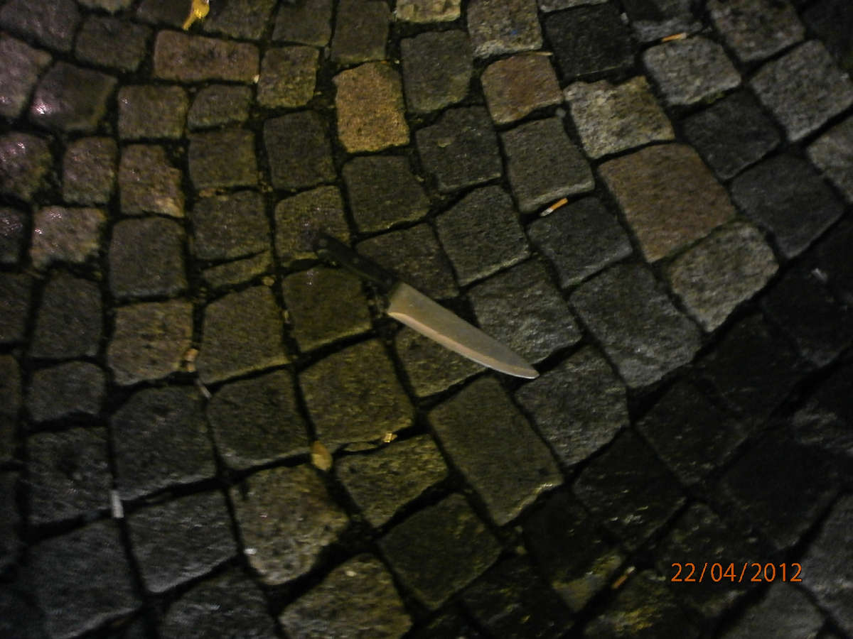 22.4.2012 v 04.45 hod.Hlídka strážníků, která vykonávala pochůzkovou činnost v centru města, zaslechla z ulice Dlouhá volání o pomoc. Strážníci se ihned vydali směrem, odkud se ozývalo volání a zároveň upozornili operační středisko na nastalou situaci. Strážník, který obsluhoval kamerový systém si na obrazovce našel dvojici mužů, která se honila okolo zaparkovaného osobního vozidla,z nichž jeden se snažil napadnou toho druhého nožem a ten před ním utíkal. Tento poznatek byl vysílačkou předán hlídce, která když se dostavila na místo, musela ke zklidnění situace použít donucovacích prostředků a to hrozbu namířenou služební zbraní. Zasahující strážníci útočníka zpacifikovali a na místo přivolali Policii ČR, která si případ převzala k dořešení. Šetřením bylo zjištěno, že útočníkem byl Jakub Š.(1988), který ještě před příchodem strážníků stačil prořezat gumy u třech osobních automobilů, které byly zaparkované v místě incidentu.