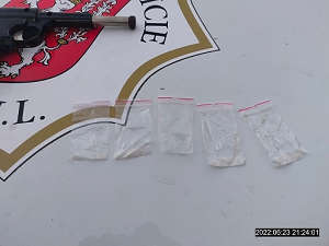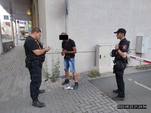 Dne 23. 06. 2022 od 21:00 do 23:00 hod., vykonávala hlídka strážníků pochůzkovou a kontrolní činnost v centru města, se zaměřením na dodržování veřejného pořádku. Zde je z operačního střediska městské policie zastihla zpráva o muži, který se pohyboval po Mírovém náměstí a dle oznamovatele měl být údajně ozbrojen krátkou zbraní, kterou měl mít zastrčenou vzadu za opaskem kalhot. Dále operátor strážníkům sdělil popis a oblečení muže a směr jeho pohybu. Hlídka dotyčného spatřila v ulici U Kostela, kde ho také zadržela. Zároveň se na místo dostavila i motorizovaná hlídka městské policie, která tuto zprávu také obdržela. Následně se strážníci u tohoto muže přesvědčili, že oznámení se zakládá na pravdě. Šetřením bylo zjištěno, že dotyčný má skutečně při sobě zbraň, ale že se jedná o nefunkční vzduchovou pistoli, kterou, jak strážníkům uvedl, má jako hračku pro svého syna. Při kontrole dotyčného, zda u sebe nemá ještě jinou zbraň, bylo u něho nalezeno pět pytlíčků, kdy čtyři z nich obsahovaly blíže nespecifikovanou látku. Z tohoto důvodu byla na místo přivolána hlídka Policie ČR, která si muže středního věku převzala k dalšímu šetření.