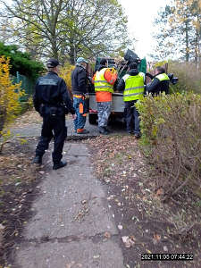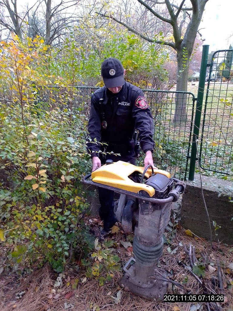 Dne 5.11.2021 v 06.37 hod., bylo služebnou městské policie obvodu Severní Terasy přijato telefonické oznámení, kdy oznamovatel strážníkům uvedl, že v ulici Muchova 1 se v křoví nachází ukrytý nějaký velký pracovní stroj. Na místě na hlídku čekal oznamovatel, který strážníkům ukázal místo nálezu. Přítomná hlídka zjistila, že se jedná o vibrační pěch zn. Wacker. O celé události byla vyrozuměna Policie ČR a příslušný pracovník místního úřadu. Vibrační pěch byl strážníky na místě předán pracovníkovi úřadu městského obvodu z oddělení ztrát a nálezů. V 08.00 hod., bylo Policií ČR sděleno, že mají již krádež uvedeného stroje nahlášenou. Stavební stroj patřil firmě, která zde prováděla stavební práce v ulici Pod Parkem.