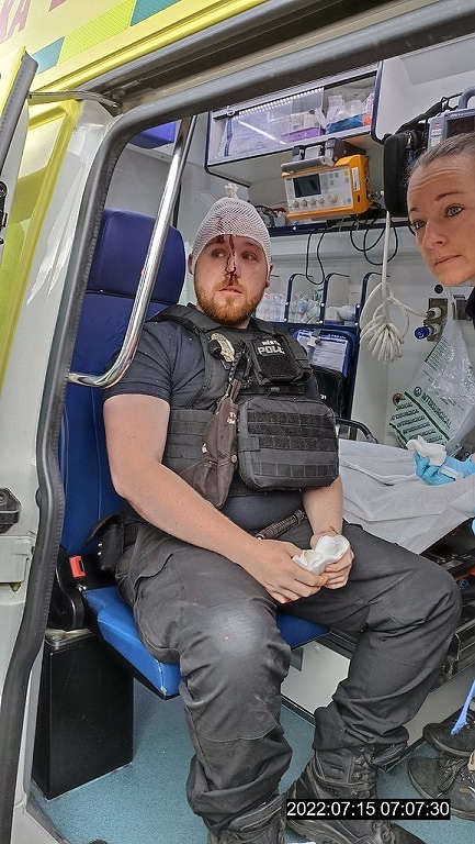 Dne 15.7.2022 v 06:35 hod., vykonávala hlídka strážníků kontrolní činnost v ulici Pod parkem, se zaměřením na dodržování veřejné pořádku. Při projíždění ulicí Pod parkem hlídka zahlédla vozidlo v zákazu vjezdu s dodatkovou tabulkou „Mimo naložení a vyložení, které přijíždělo čelně ke služebnímu vozidlu. Hlídka se toto vozidlo pokusila zastavit spuštěným zapnutým modrým světelným zařízením. Jednalo se o osobní vozidlo Opel, kdy řidič následně vystoupil z vozidla a kdy byl strážníkem poučen o důvodném porušení ze spáchání přestupku nerespektování dopravní značky B1 zákaz vjezdu s dodatkovou tabulkou „Mimo naložení a vyložení max. 30 min. Následně byl dotyčný hlídkou vyzván k prokázání totožnosti, načež řidič tohoto vozidla reagoval slovy „tak si to auto nechte“. Po celou dobu jednání se řidič choval agresivně. Na straně spolujezdce seděla neznámá žena, která přistoupila ke strážníkovi a omlouvala se za jeho chování vůči zasahujícímu strážníkovi. Místo toho, aby řidič dle pokynů hlídky setrval na místě kvůli vyřešení dopravního přestupku, tak nasedl zpět do svého vozidla a začal ujíždět přes travnatou zeleň do ul. Ladova. Hlídka následně za použití světelných a zvukových signálů začala služebním vozidlem muže pronásledovat. V ulici Ladova ujíždějící řidič vozidlo otočil a stejnou cestou ujížděl zpět do ulice Pod parkem a posléze odbočil na hlavní komunikaci směrem do ulice Ladova, kde po chvilce své vozidlo zastavil a sám z vozidla vystoupil. Hlídka vystoupila ze služebního vozidla a ihned se vydala směrem k řidiči, kterého vyzvala výzvou „Jménem zákona, stůjte“. Řidič si lehl za své vozidlo na záda na pozemní komunikaci, ruce si spojil k sobě se slovy „co na mě zkoušíte?“ a hlídce se ironicky vysmíval. Hlídka tohoto muže opětovně vyzvala „Jménem zákona“, aby se otočil na břicho, z důvodu přiložení služebních pout na ruce. Jmenovaný na pokyny strážníků nijak nereagoval, proto bylo použito proti muži donucovacích prostředků. Následně se dotyčnému podařilo ze země vstát a pokusil se fyzicky napadnout jednoho ze strážníků. Při zákroku proti přestupci vypadla jednomu ze strážníků vysílačka, kterou agresor po strážníkovi hodil a trefil ho do hlavy, kde mu způsobil tržnou ránu na hlavě. Po použití těchto donucovacích prostředků, se muž snažil hlídce utéct zpět do svého vozidla. V tomto jednání mu hlídka strážníků ale zabránila. Po zpacifikování muže hlídka o celé věci vyrozuměla velitele směny a na místo přivolala zdravotní záchrannou službu a hlídku Policie ČR. Zraněný strážník byl na místě ošetřen přivolanými zdravotníky a poté byl odvezen k dalšímu vyšetření do Masarykovy nemocnice. Celý případ si převzala Policie ČR k dalšímu šetření.
