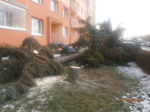 V ulici zvonková neznámý občan nařízl strom, který hrozil pádem.