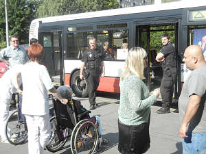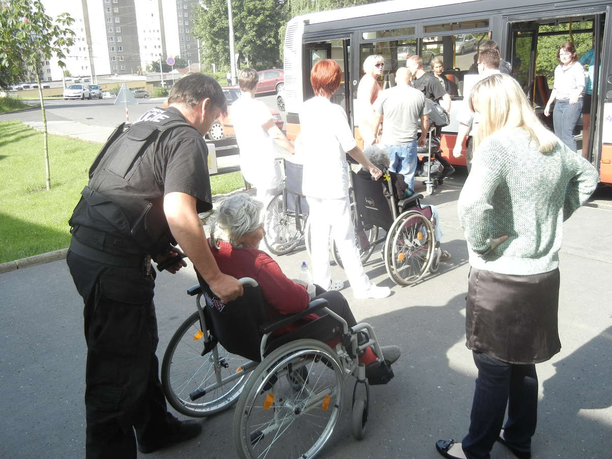 Strážníci pomáhali při návratu, po povodních, seniorům do svých domovů.