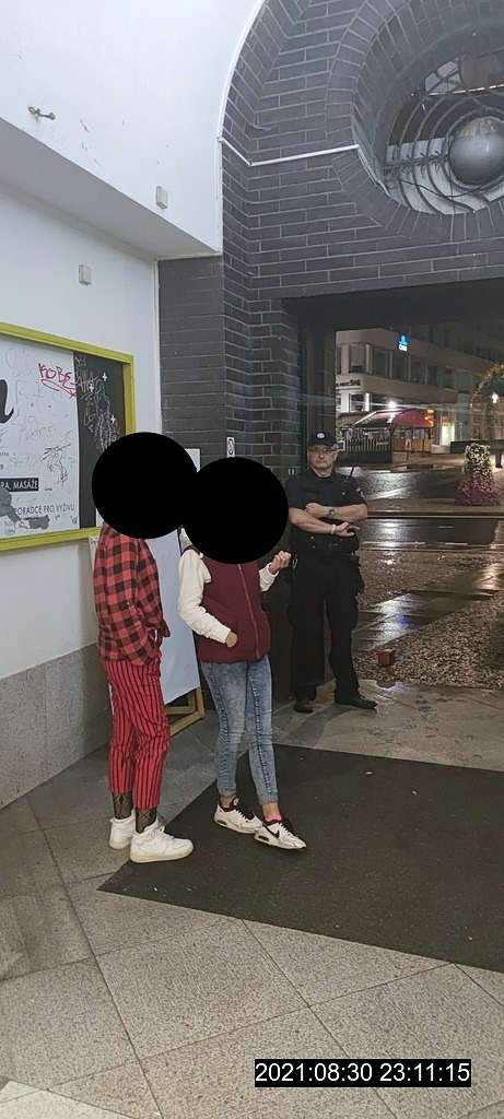 Dne 30.08. 2021 v 22.50 hodin, byla na žádost operačního střediska městské policie vyslána hlídka strážníků na Mírové náměstí 25, do pasáže JEPA, kde se dle oznamovatele měla nacházet dvě děvčata, která mají údajně problém s penězi. Po příchodu na místo hlídku oslovil oznamovatel (obsluha provozovny Tutti Pizza), který strážníkům sdělil, že jej tato děvčata oslovila s tím, že nemají peníze na cestu domů a zdali by jim mohl nějak pomoci. Zároveň hlídce označil obě děvčata, která stála před pasáží JEPA. Obě dívky následně hlídce sdělily, že údajně ztratily peníze, nemají jak se dostat domů a jejich rodiče prý o jejich výletu do Ústí nad Labem nic nevědí. Z nadiktovaných údajů bylo pomocí informačním systému evidence obyvatel zjištěno a následně ověřeno, že se jedná o nezletilé dívky z Litoměřic a Mostu. Z tohoto důvodu byla na místo přivolána hlídka Policie ČR, která si od strážníků celou záležitost, včetně obou děvčat, převzala k dalšímu šetření.
