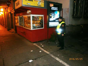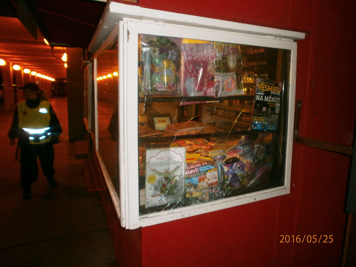 Dne 25.05.2016 v 04.05 hodin, prováděla hlídka strážníků kontrolní činnost v ulici Revoluční, kde si všimla rozbité boční výlohy novinového stánku u budovy Krajské správy ředitelství Policie ČR. Strážníci ihned zabezpečili místo proti vstupu nepovolaných osob a následně prohledali okolí stánku, zda se zde pachatel někde nezdržuje, ale toho se jim nalézt nepodařilo. Vzhledem k tomu, že se mohlo jednat o trestný čin vloupání, byla na místo přivolána Policie ČR, která si celý případ převzala k dořešení.