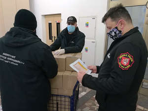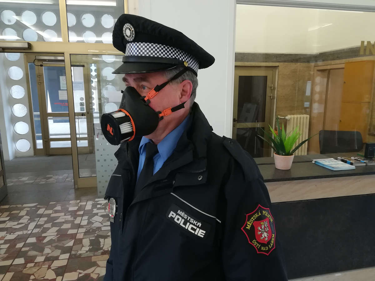 Městská policie Ústí nad Labem děkuje Krajskému úřadu Ústeckého kraje za poskytnutí ochranných pomůcek v podobě polomasek, které jsou schopny svého majitele ochránit před některými viry a bakteriemi. Tyto polomasky strážníci využijí při plnění svých úkolů , kdy může být ohroženo jejich zdraví, hlavně v těchto dnech, kdy hlídky mimo svoji běžnou činnost zavážejí základní školy, domovy pro seniory a mateřské školy hygienickými prostředky. Tento typ masek je vybaven společným dechovým a výdechovým ventilem, který by je měl ochránit nejen před prachem, ale i před bakteriemi a viry. Od dnešního dne tedy bude šedesát strážníků chráněno před škodlivými vnějšími vlivy. Dne s pokračovalo zavážení hygienického materiálu do domovů pro seniory, základní školy a mateřské školy. Strážníci společně s asistenty prevence kriminality vyexpedovali do těchto organizací na čtyři tisíce půlkilových gelů na ruce.