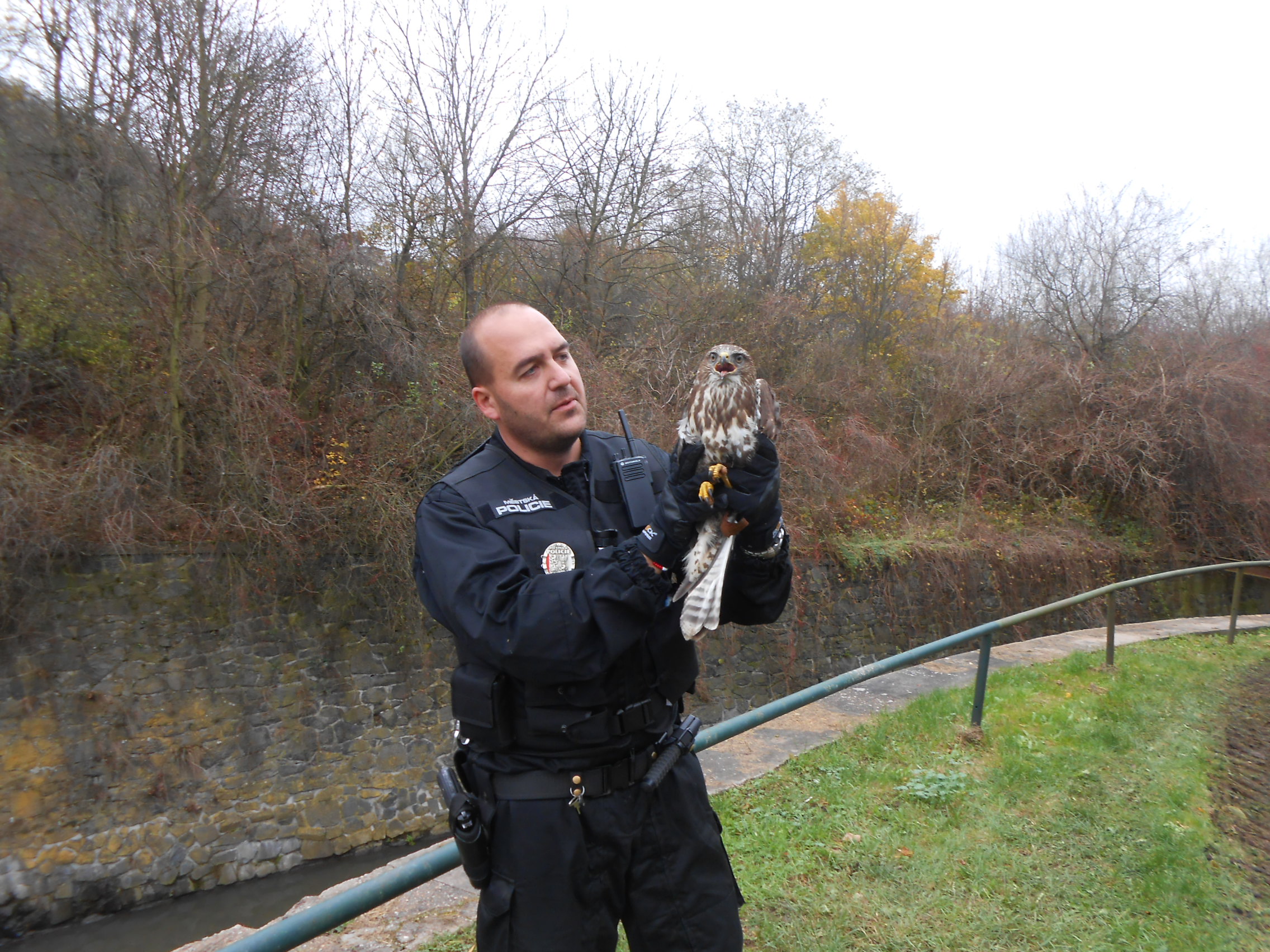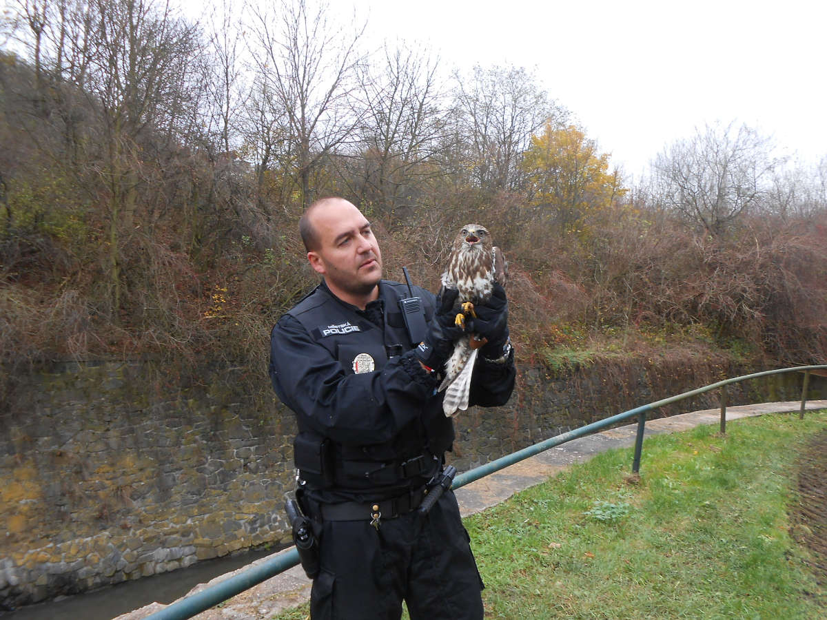 Dne 7.11.2017 v 11,00 hod., telefonovala na tísňovou linku městské policie oznamovatelka, která operátorovi sdělila, že při procházce s dětmi uviděla v ulici Vinařská v křoví zřejmě poraněného nějakého dravce. Na místo byla vyslána hlídka strážníků ze skupiny operačního zákroku, která zde opeřence našla a posléze i odchytila. Jednalo se o káně lesní, které mělo poraněné křídlo. Strážníci ptáka odvezli do městského útulku pro opuštěná zvířata, kde bylo káně ošetřeno veterinářkou. Ta u káněte zjistila, že jeho pravé křídlo je bez letek, a tudíž není schopno při letu manévrovat a ve volné přírodě by zákonitě uhynul. Z těchto důvodů bylo káně po ošetření odvezeno do chovné stanice pro dravce.