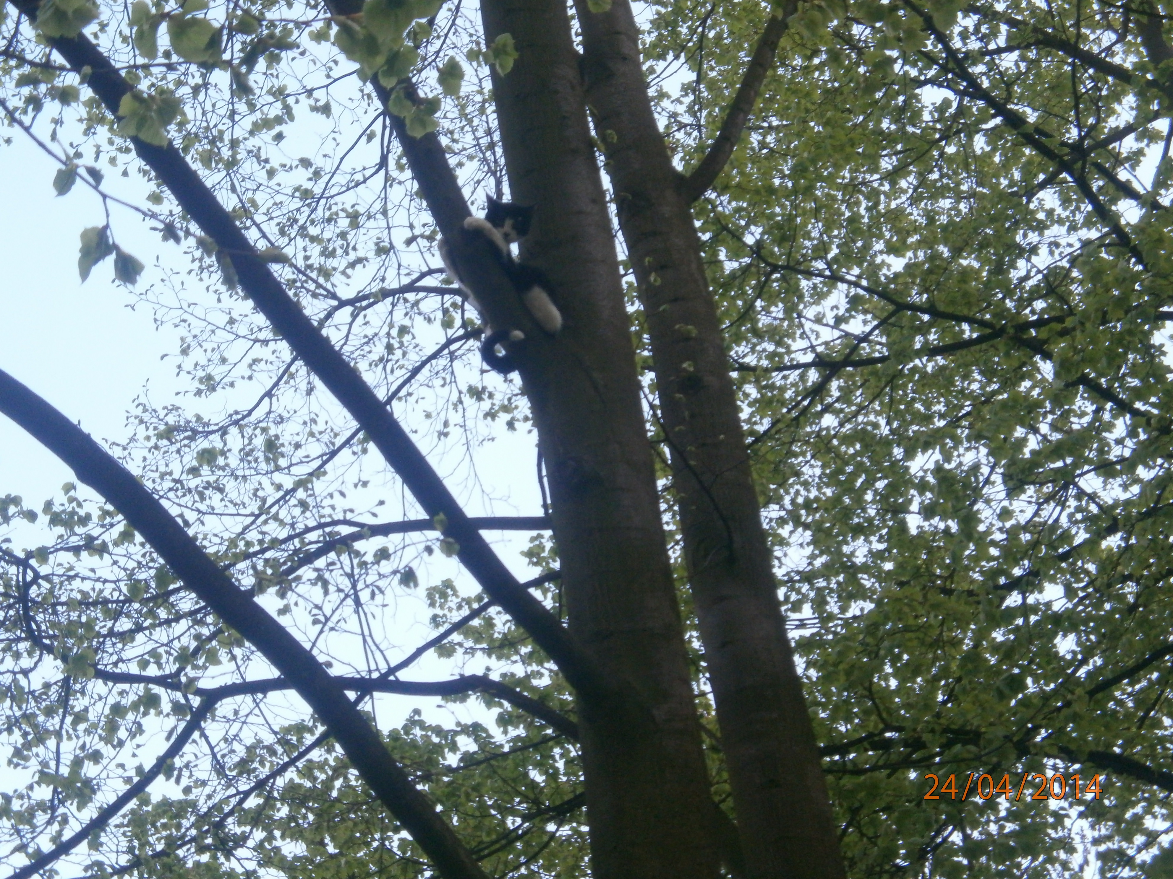 Dne 24.4.2014 v 13,20 hod., telefonovala na tísňovou linku městské policie neznámá žena, která uvedla, že v ulici Ladova se na stromě, zhruba ve výšce deseti metrů nachází kočka, která bez cizí pomoci nemůže slézt na zem. Strážníci na místě pomocí lezecké techniky a odchytové sítě zvíře odchytli a po kontrole jejího zdravotního stavu byla kočka puštěna do volné přírody.