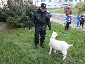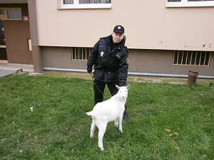 Dne 1.12.2015 v 14,56 hod., byla na žádost operačního střediska městské policie vyslána hlídka strážníků do ulice J.Plachty, odkud na tísňovou linku městské policie telefonoval oznamovatel, který operátorovi sdělil, že se ve zmíněné ulici volně pohybuje koza. Strážníci na místě zvíře odchytili, neboť zde hrozilo nebezpečí střetu zvířete s projíždějícími vozidly. Vzhledem k tomu, že se hlídce nepodařili zjistit majitele zvířete, byla koza odvezena do městského útulku pro opuštěná zvířata, kde byla předána do péče pracovníků útulku.