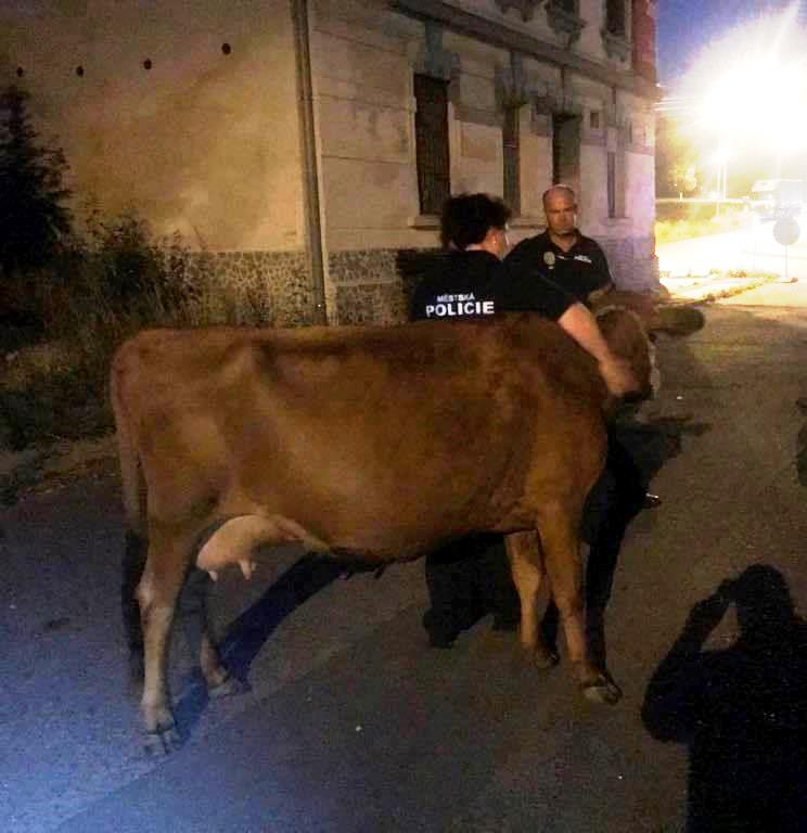 Dne 31.7.2019 v 03:56 hod., telefonoval na tísňovou linku městské policie oznamovatel, který operátorovi sdělil, že na Školním náměstí v Předlicích pobíhá kráva, která ohrožuje bezpečnost a plynulost silničního provozu. Po příjezdu hlídky na místo bylo zvíře po krátké době strážníky odchyceno. Hlídky se pokoušely místním šetřením zjistit majitele krávy, ale to se jim nepodařilo, proto ji strážníci dočasně umístili v objektu služebny městské policie Na Nivách. Vzhledem k tomu, že kráva byla v uchu označena číslem, podařilo se strážníkům podle tohoto označení kontaktovat majitele krávy, který se v odpoledních hodinách pro zvíře dostavil. Po sepsání úředního záznamu byla kráva majiteli vrácena.